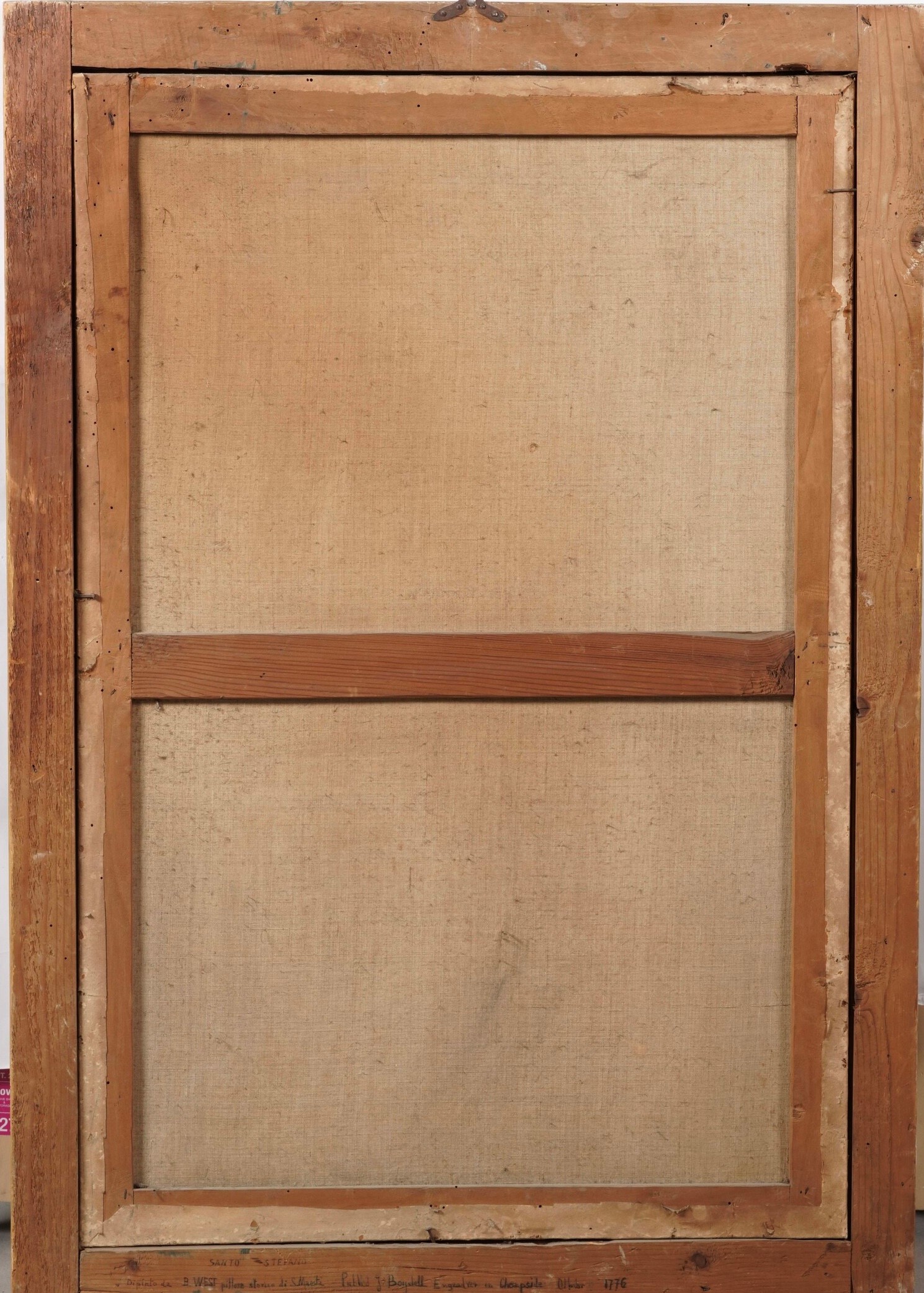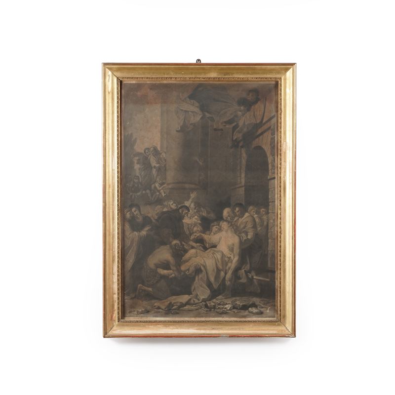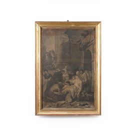 Grande stampa in cornice dorata raffigurante scena religiosa