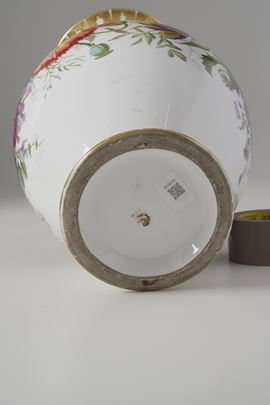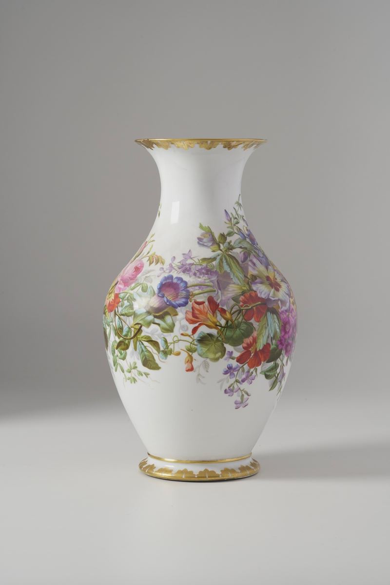 Grande vaso in porcellana tipo vecchia Parigi con decoro di fiori policromi