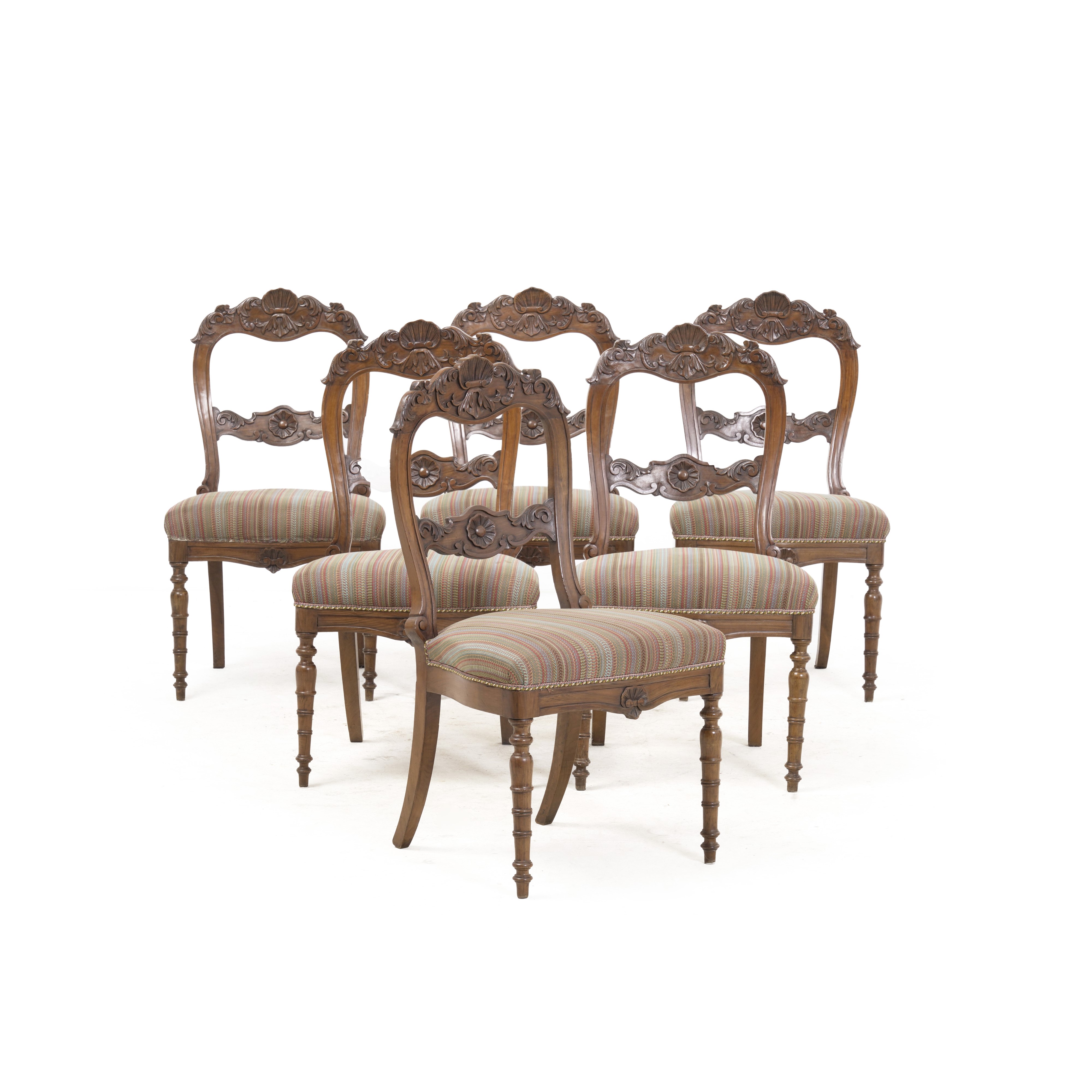 Gruppo di sei sedie in legno intagliato. XIX-XX secolo
