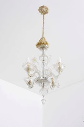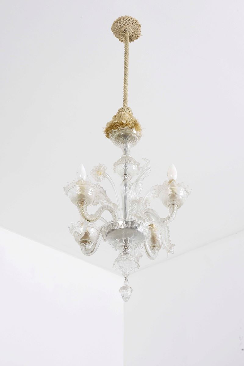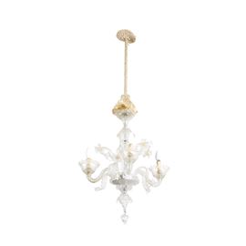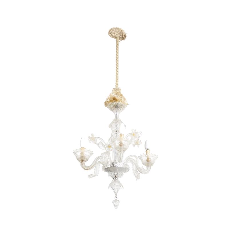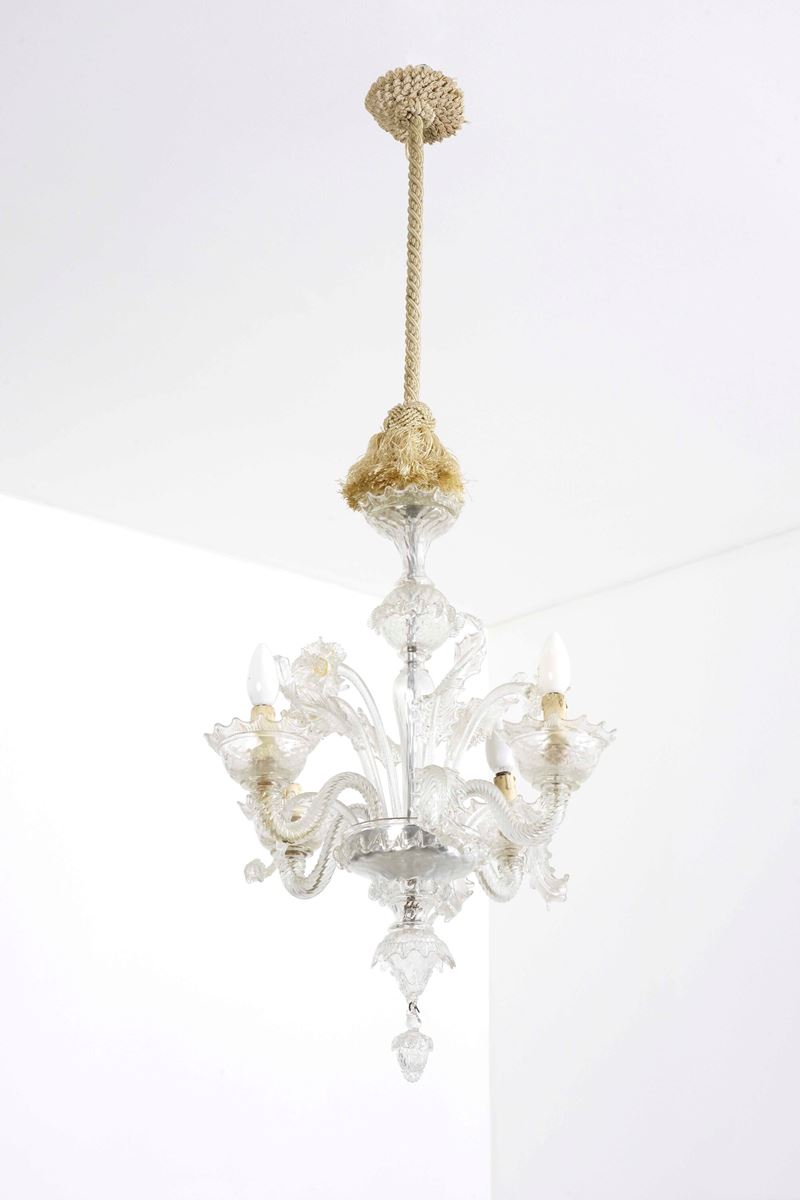 A quattro luci, bracci mossi, bobeche a campana, elementi decorativi a foglie e fiori (difetti)
