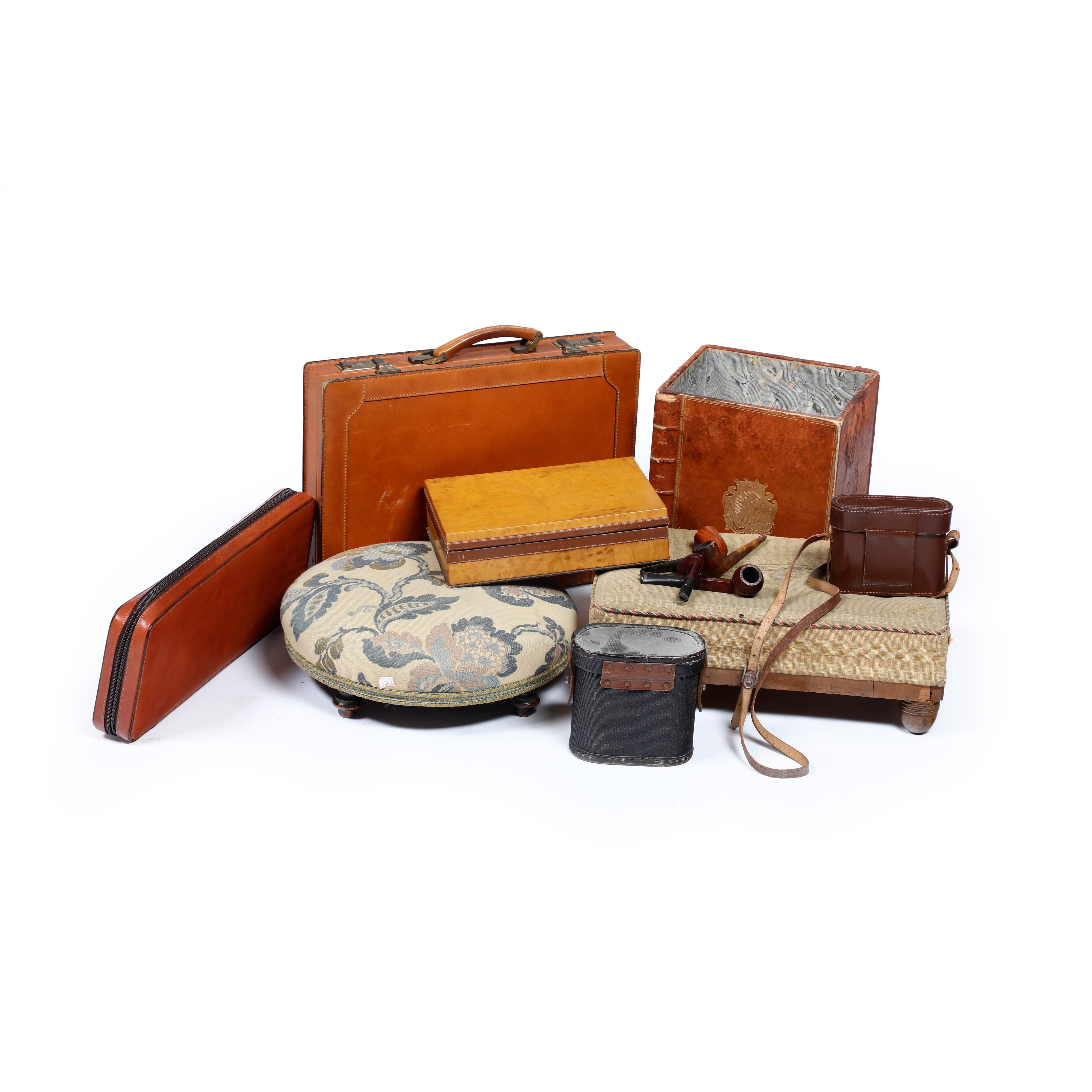 Lotto misto composto da due panchetti poggiapiedi, scatole e altro