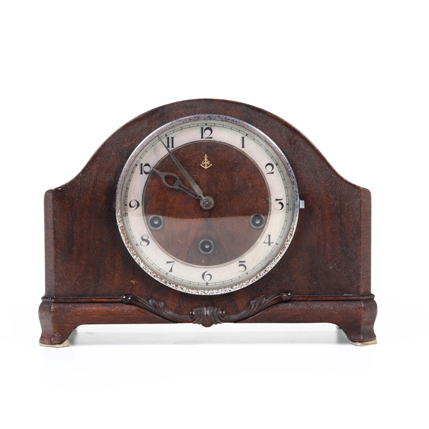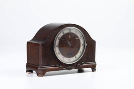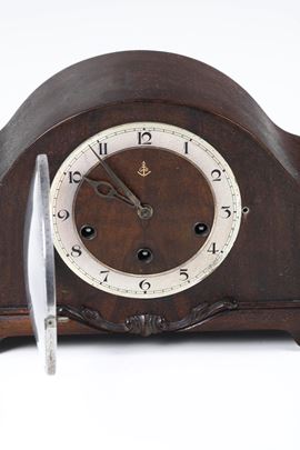 Cassa in legno con fregio fitomorfo alla base, quadrante con numeri arabi