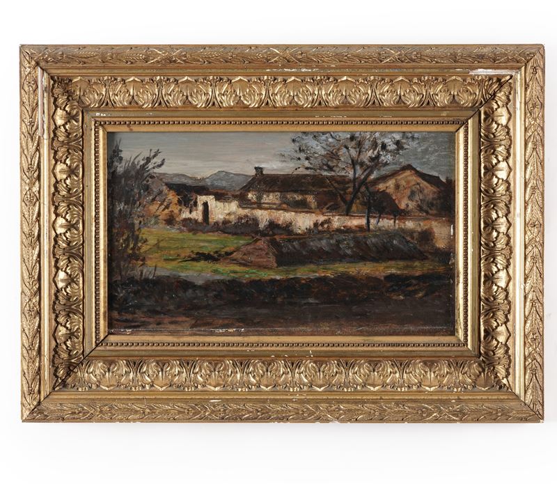 Pittore del XIX-XX secolo Paesaggio con cascina