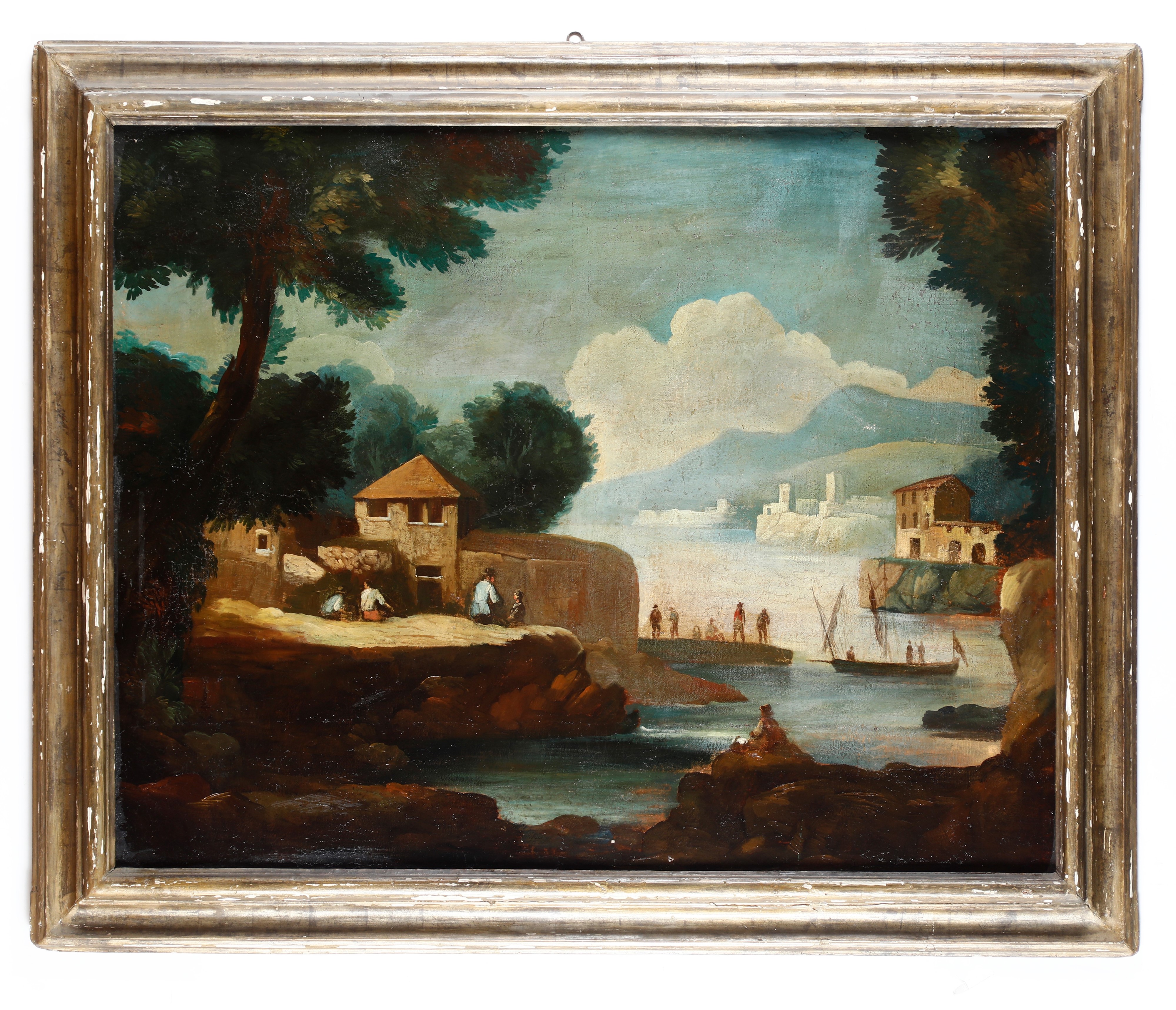 Scuola del XVIII secolo Paesaggio fluviale con pescatori