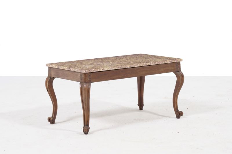 Tavolino in legno con piano in marmo