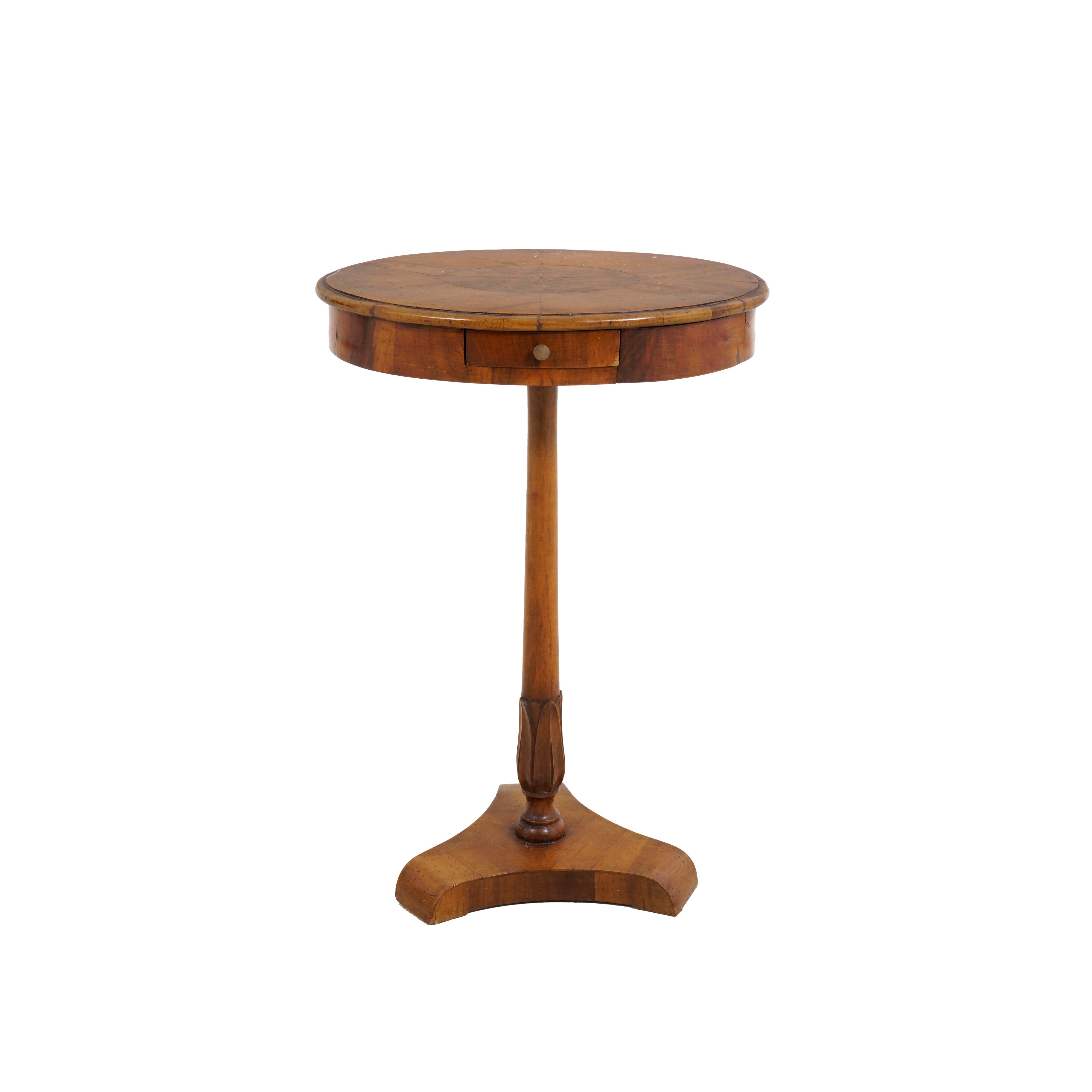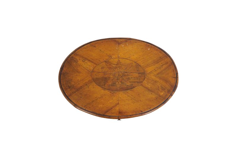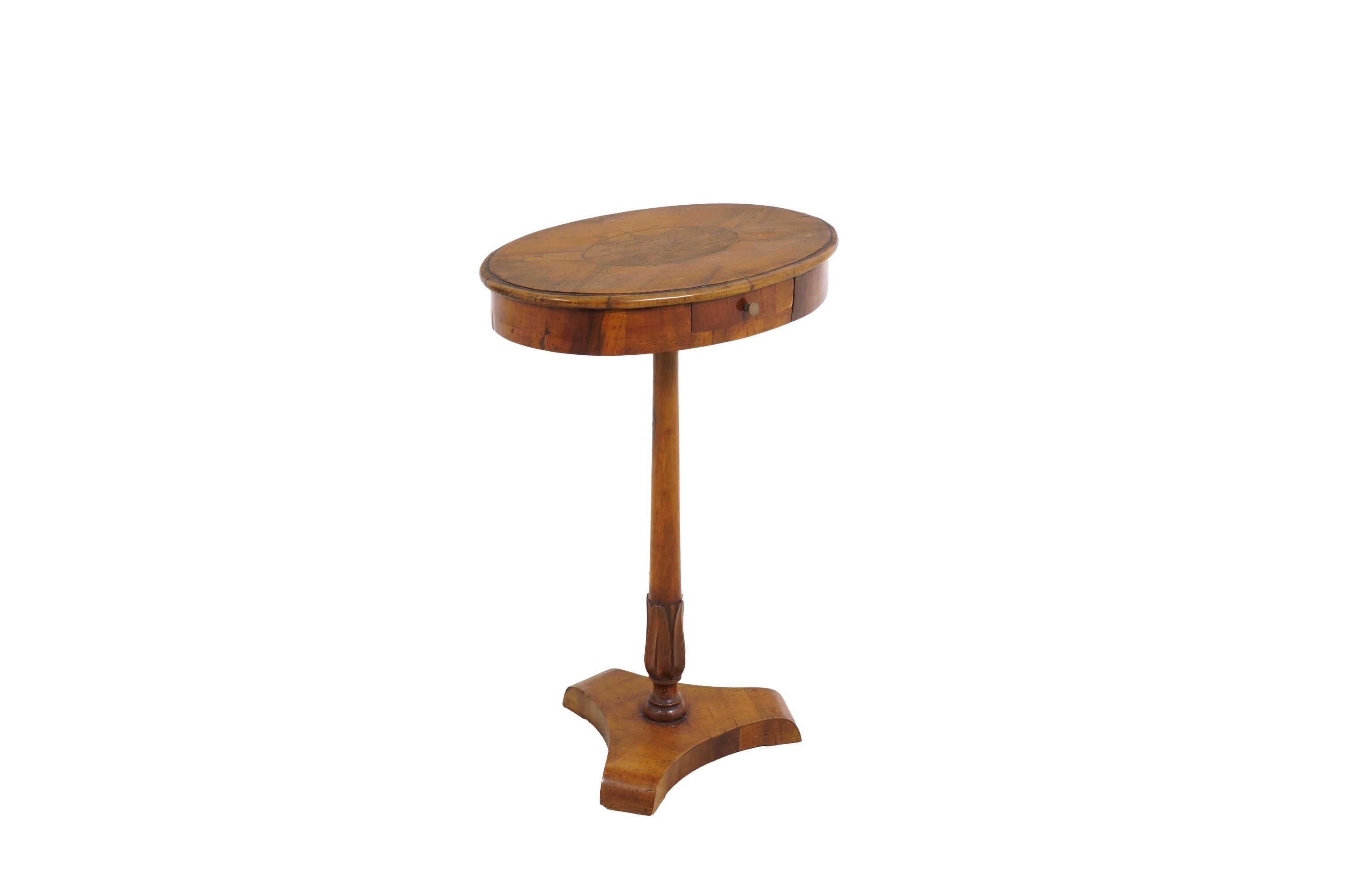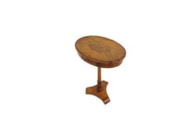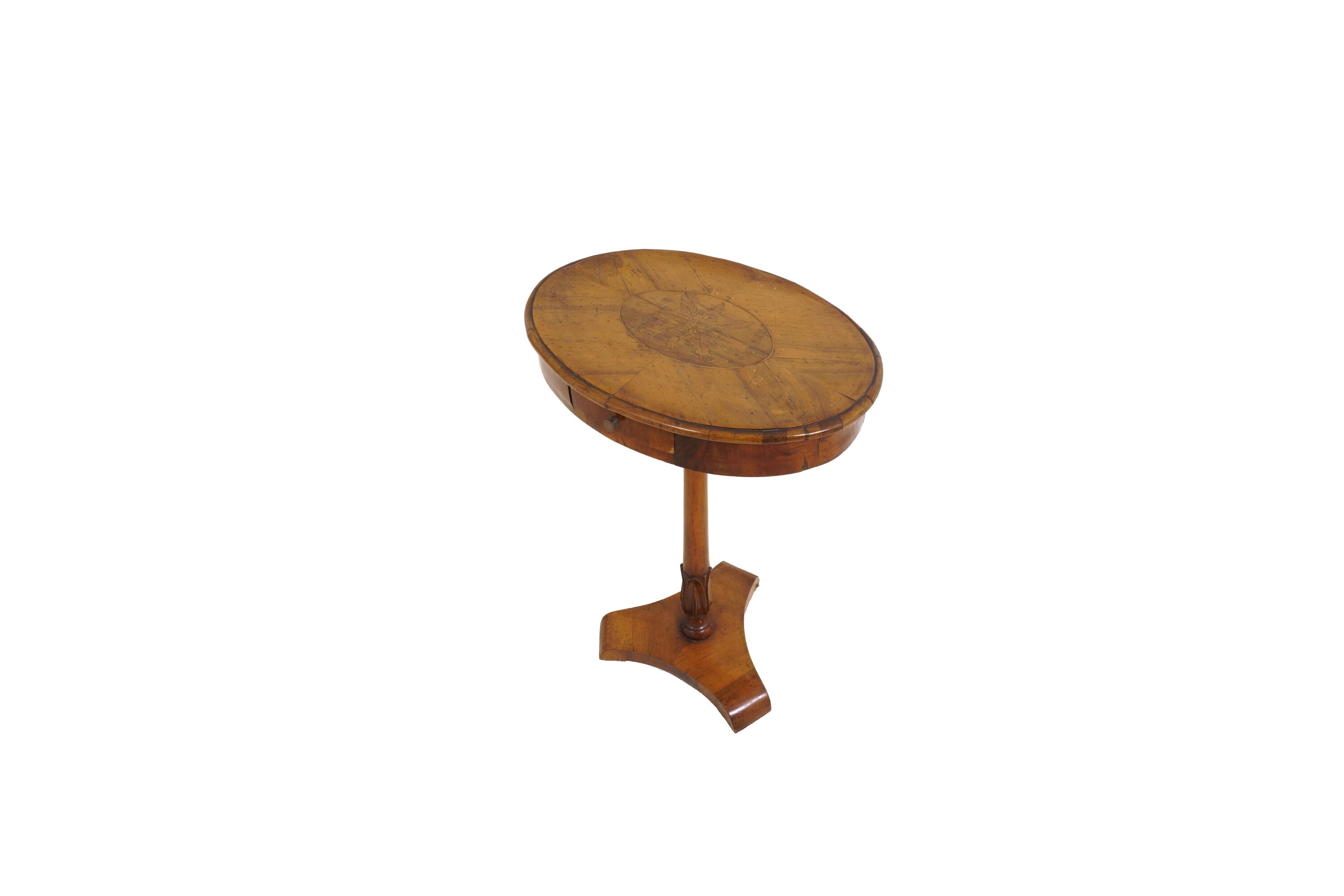 Piano ovale con cassettino nella fascia, fusto a colonna rastremata
