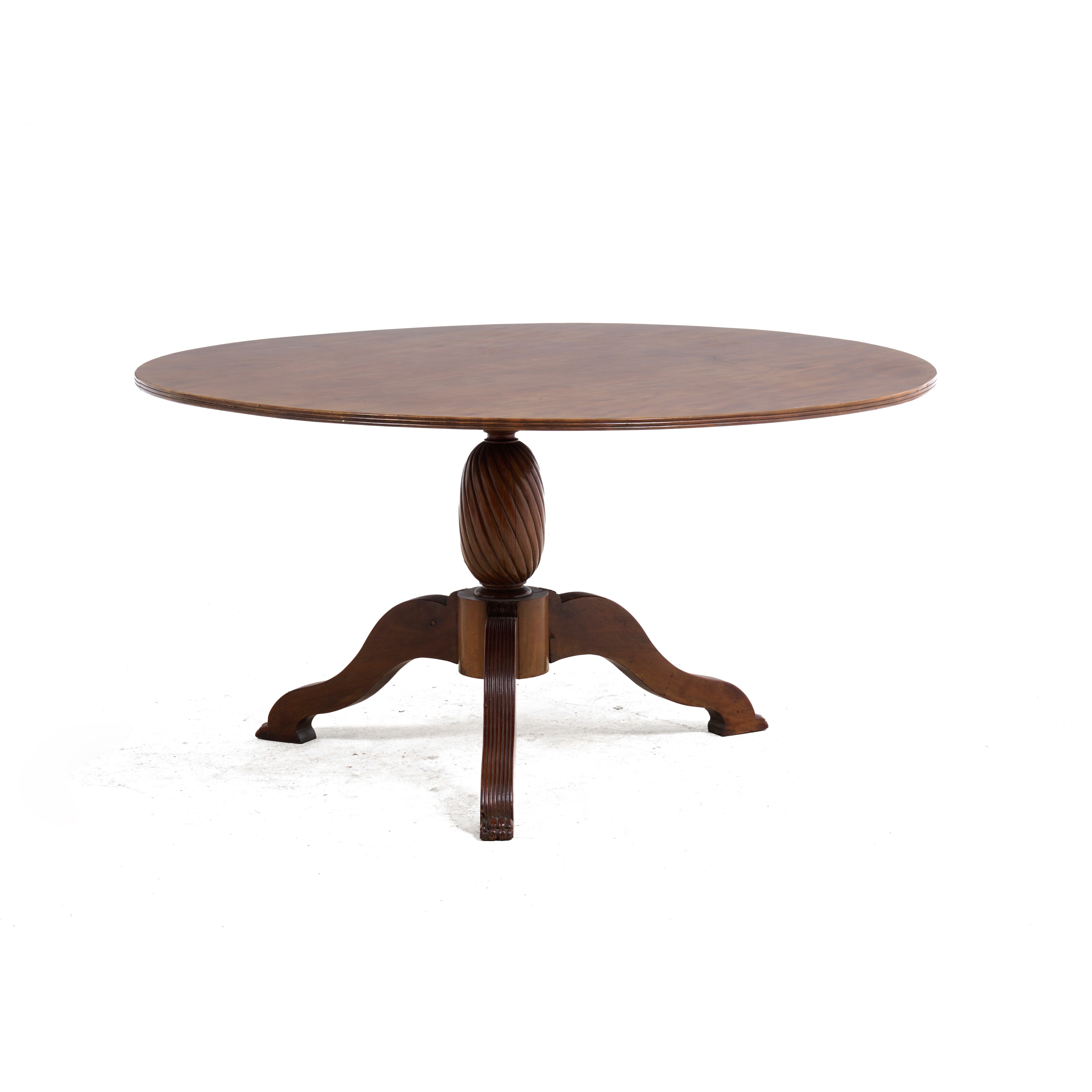 Tripode, fusto tornito e torchon, piano tondo