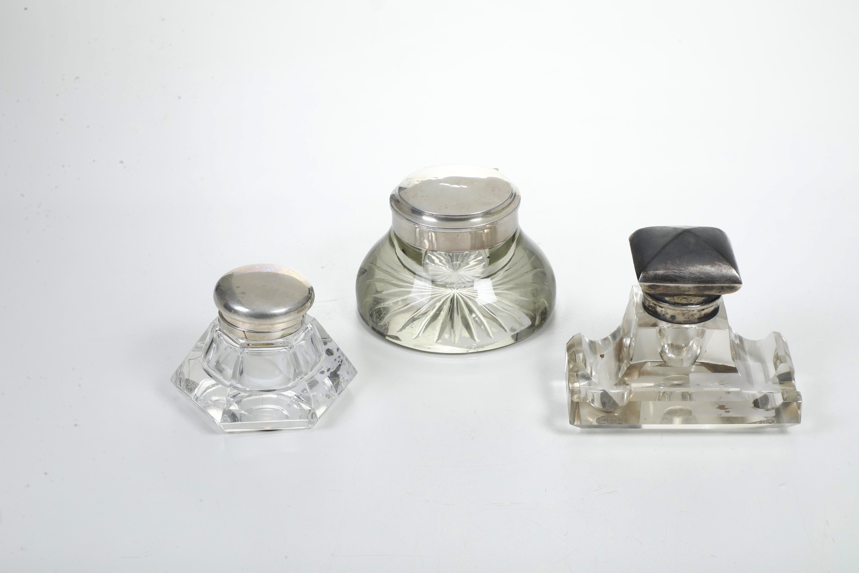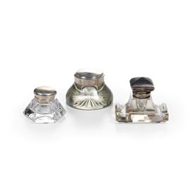 Tra diversi calamai in cristallo con tappo in argento. Inghilterra e Italia XIX-XX secolo