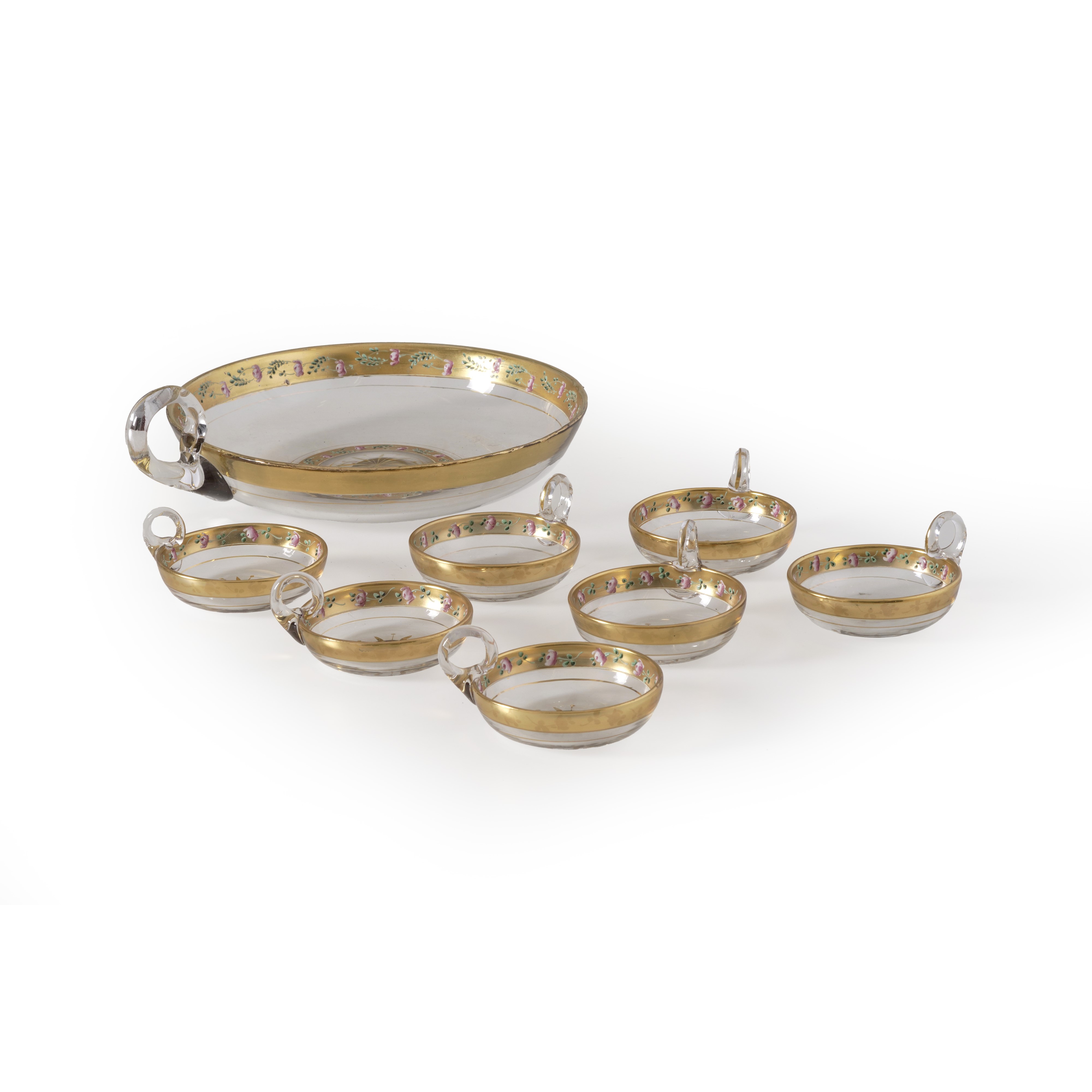 Tutte con manico, bordo dorato con decoro floreale