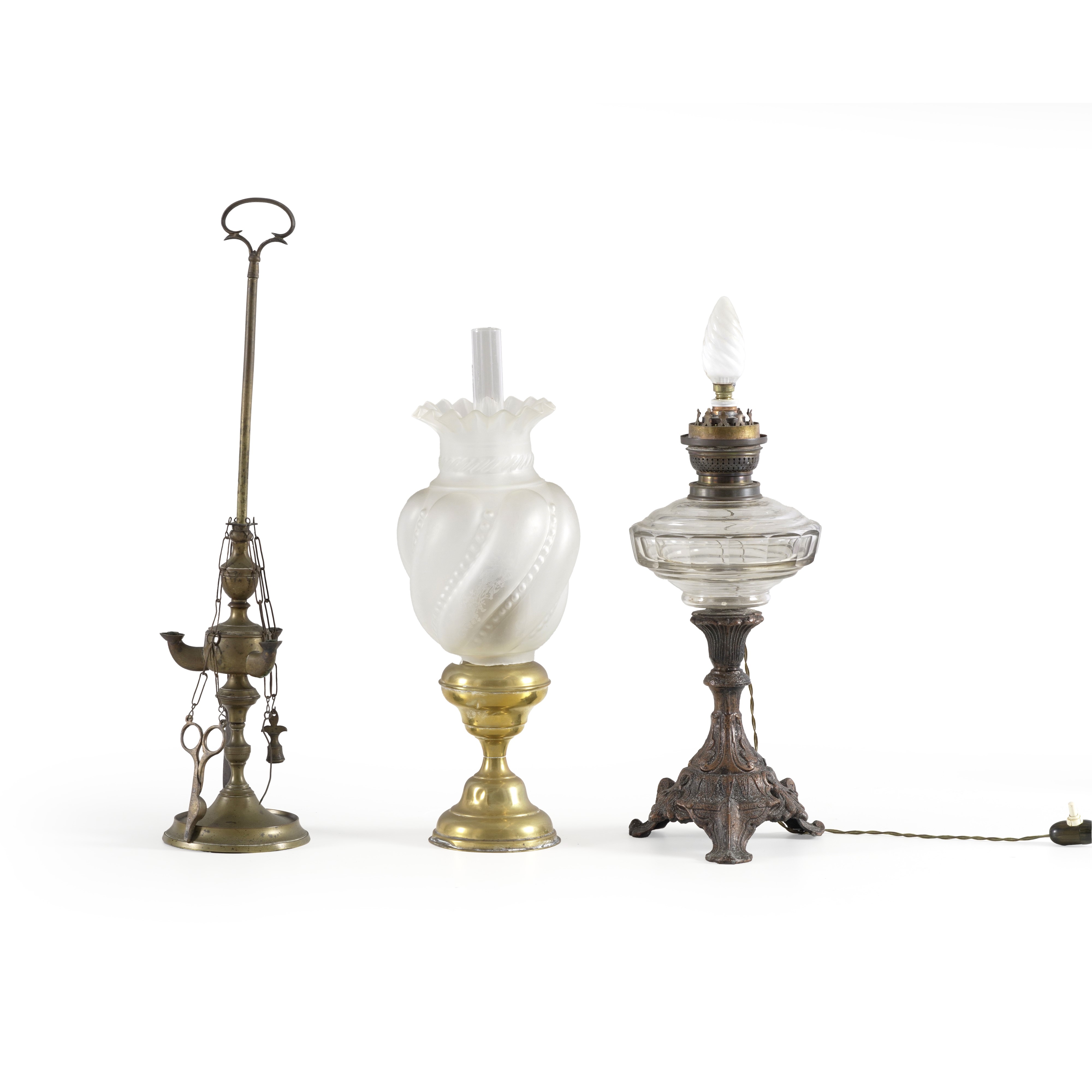 Una fiorentina e altre due lampade in metallo di diversa foggia