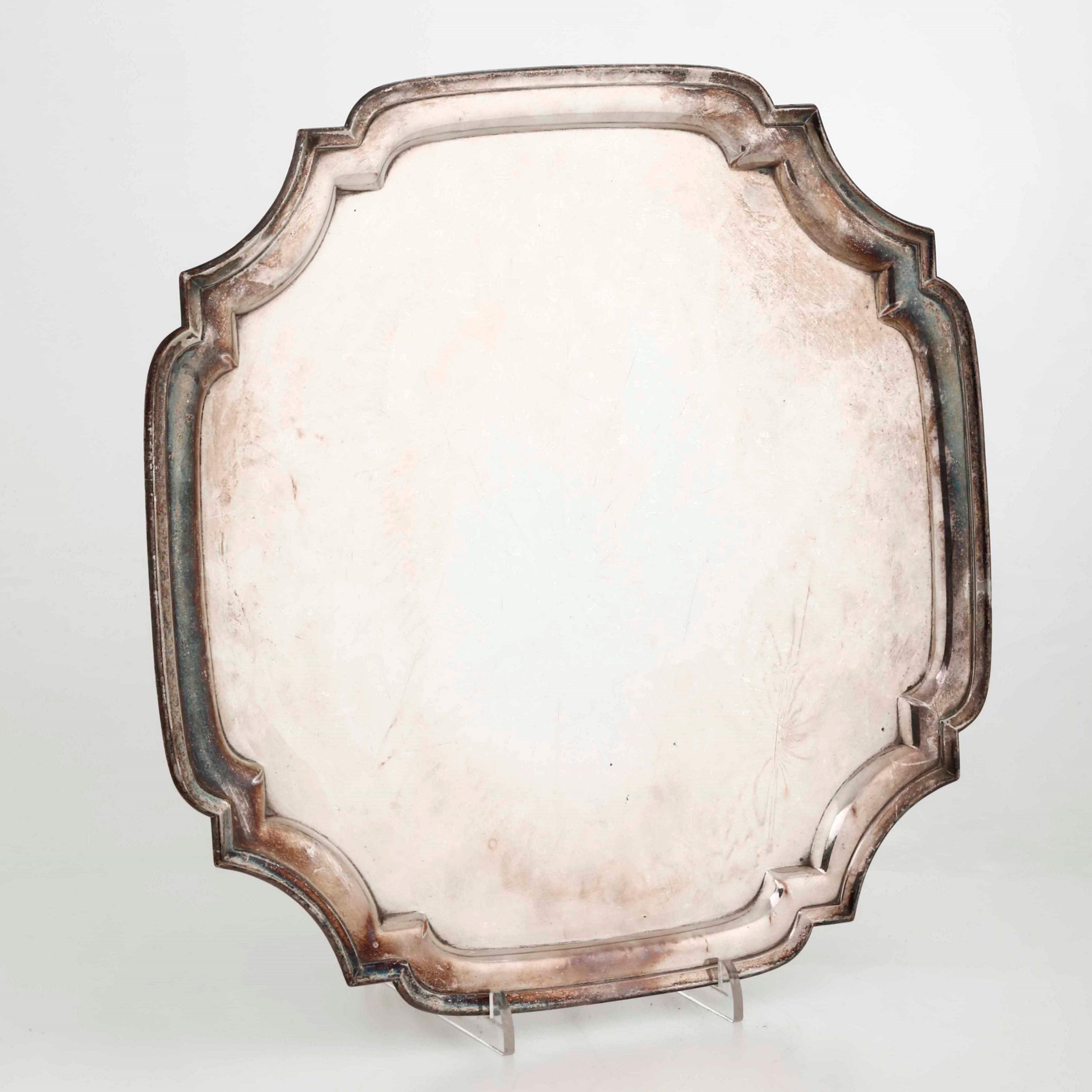 Vassoio in rame argentato e sagomato. XX secolo