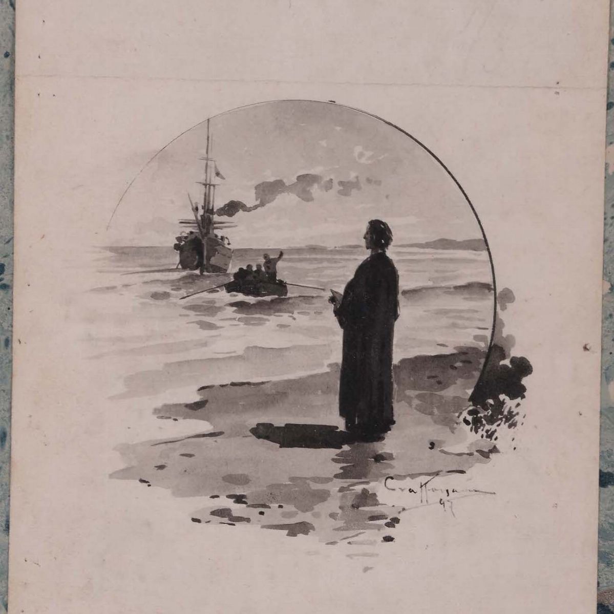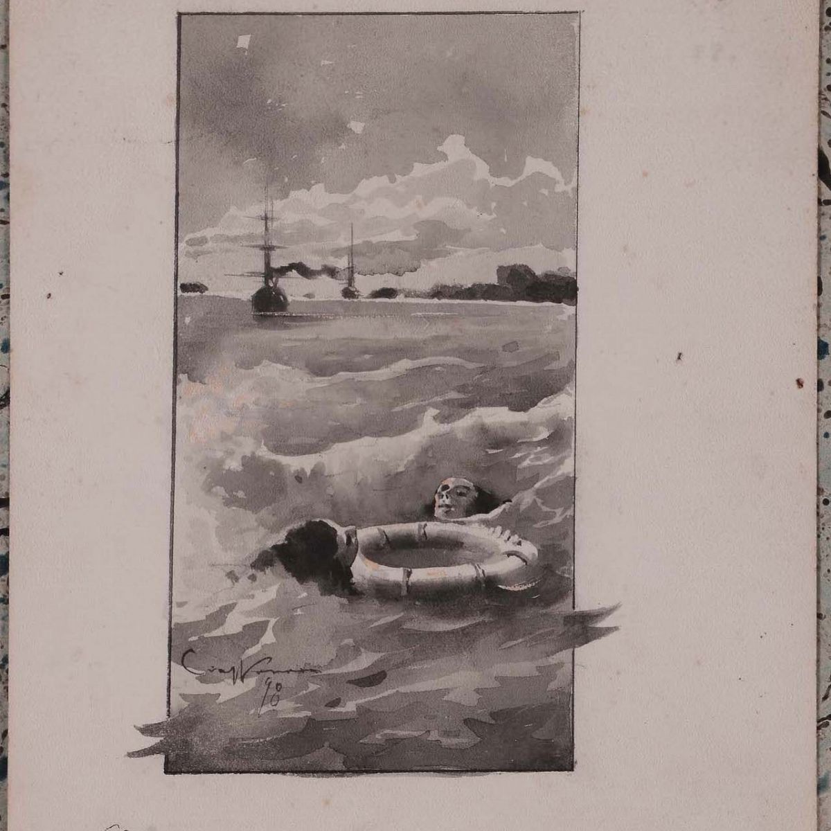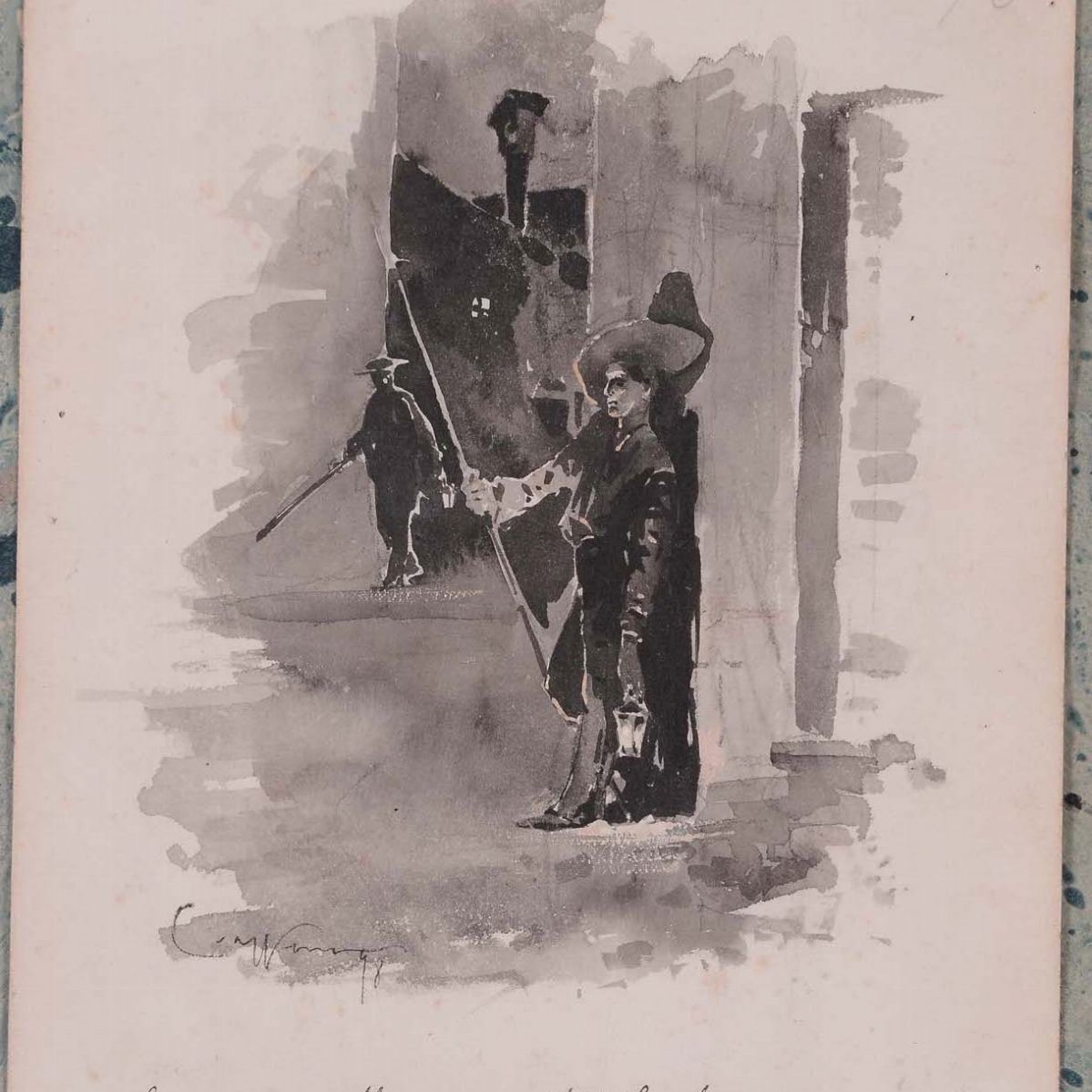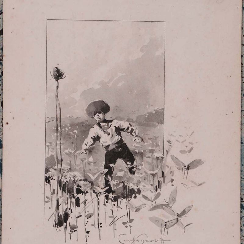 Sei bozzetti per illustrazioni acquerello su carta, cm 21x16, firmati