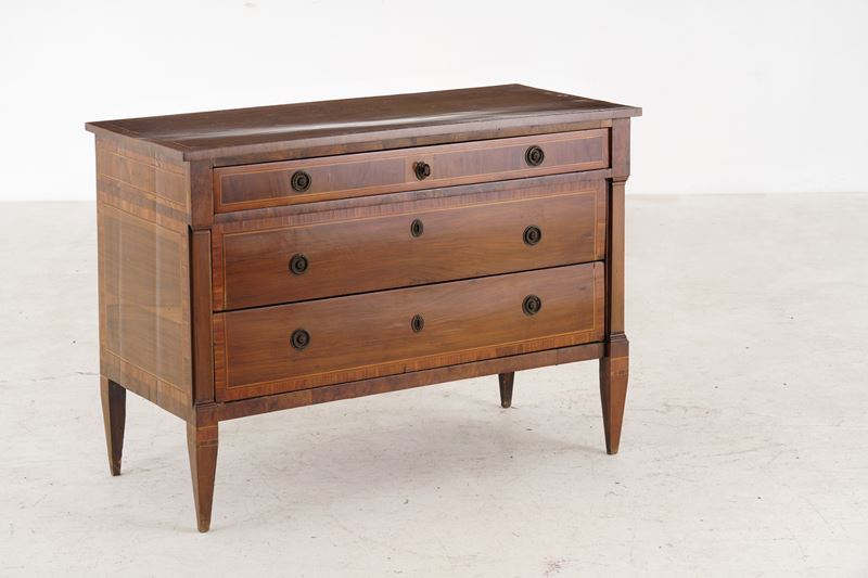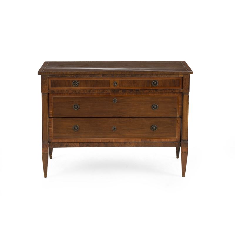 Cassettone Luigi XVI lastronato e filettato. XVIII secolo