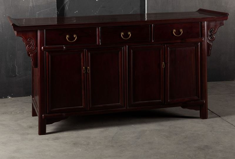 Mobile basso in legno di Hongmu con ante e cassetti, Cina, XX secolo