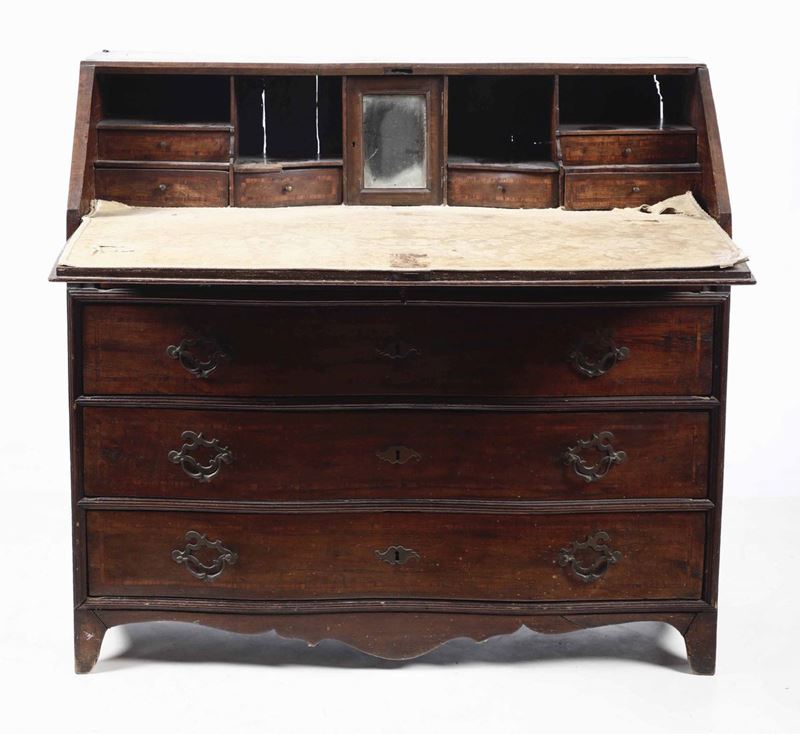 Ribalta a quattro cassetti in noce, XVIII secolo