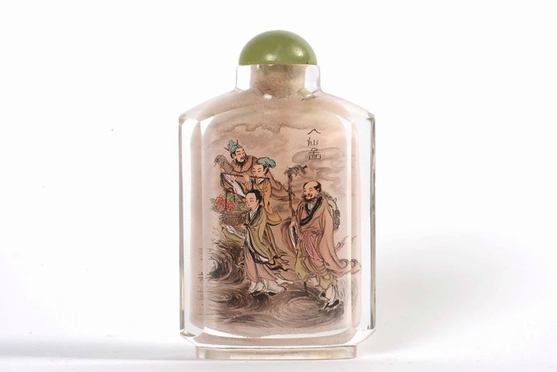 Snuff bottle in vetro dipinto con figure e iscrizioni, Cina, Dinastia Qing, XIX secolo