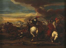 Scontro di cavalleria tra cristiani e saraceni
