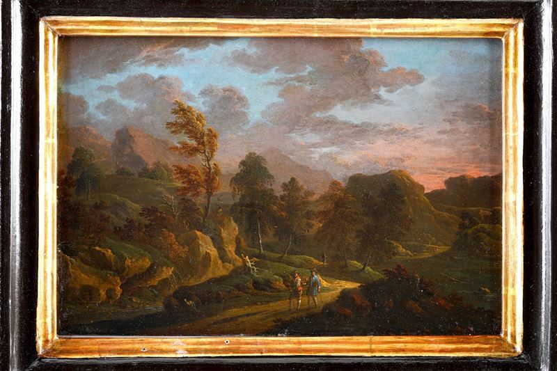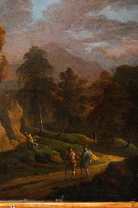 Paesaggio con due viandanti in cammino