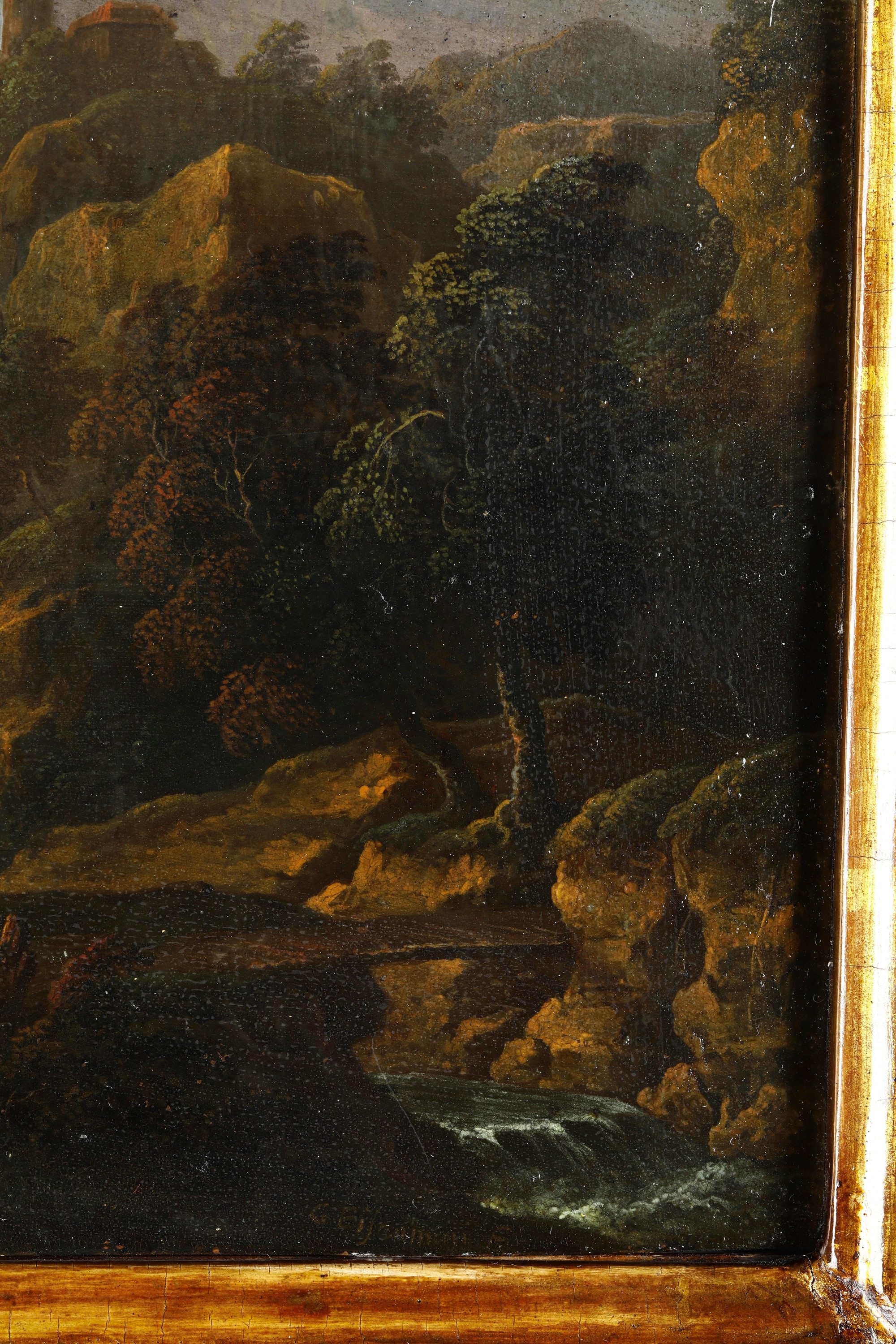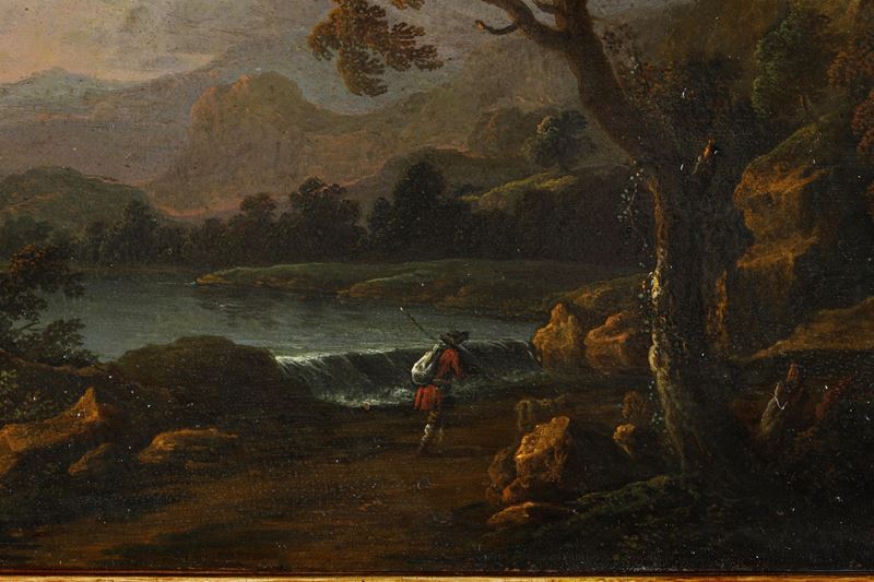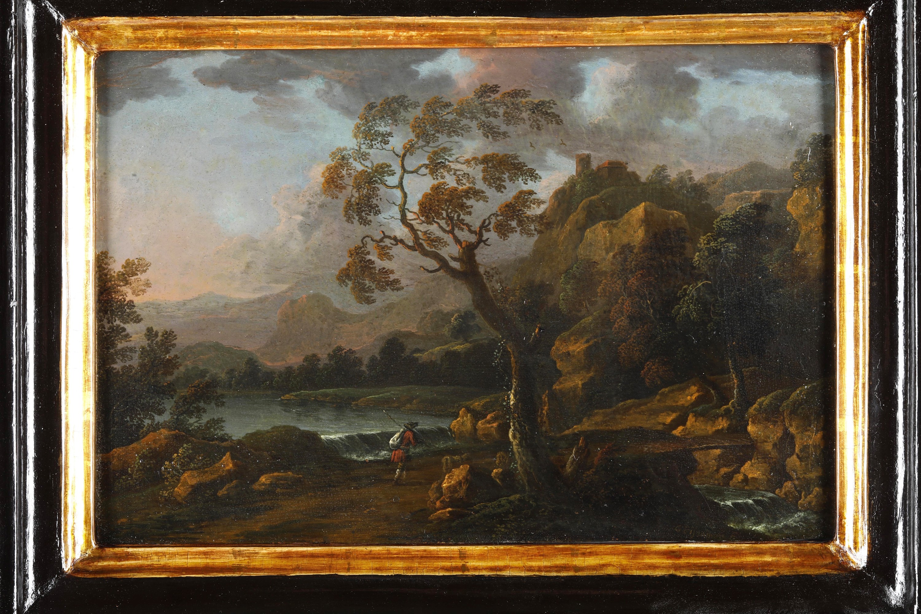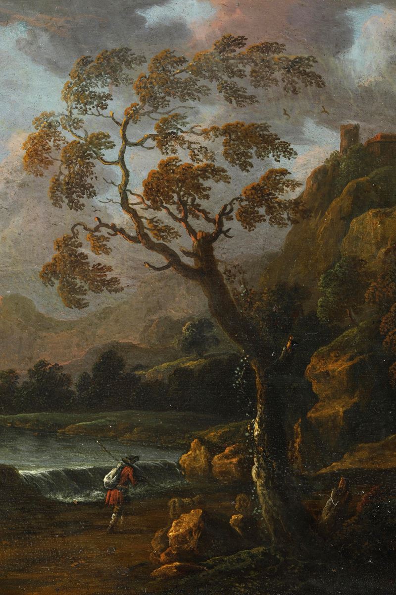 Paesaggio con viandante e fortificazione sullo sfondo