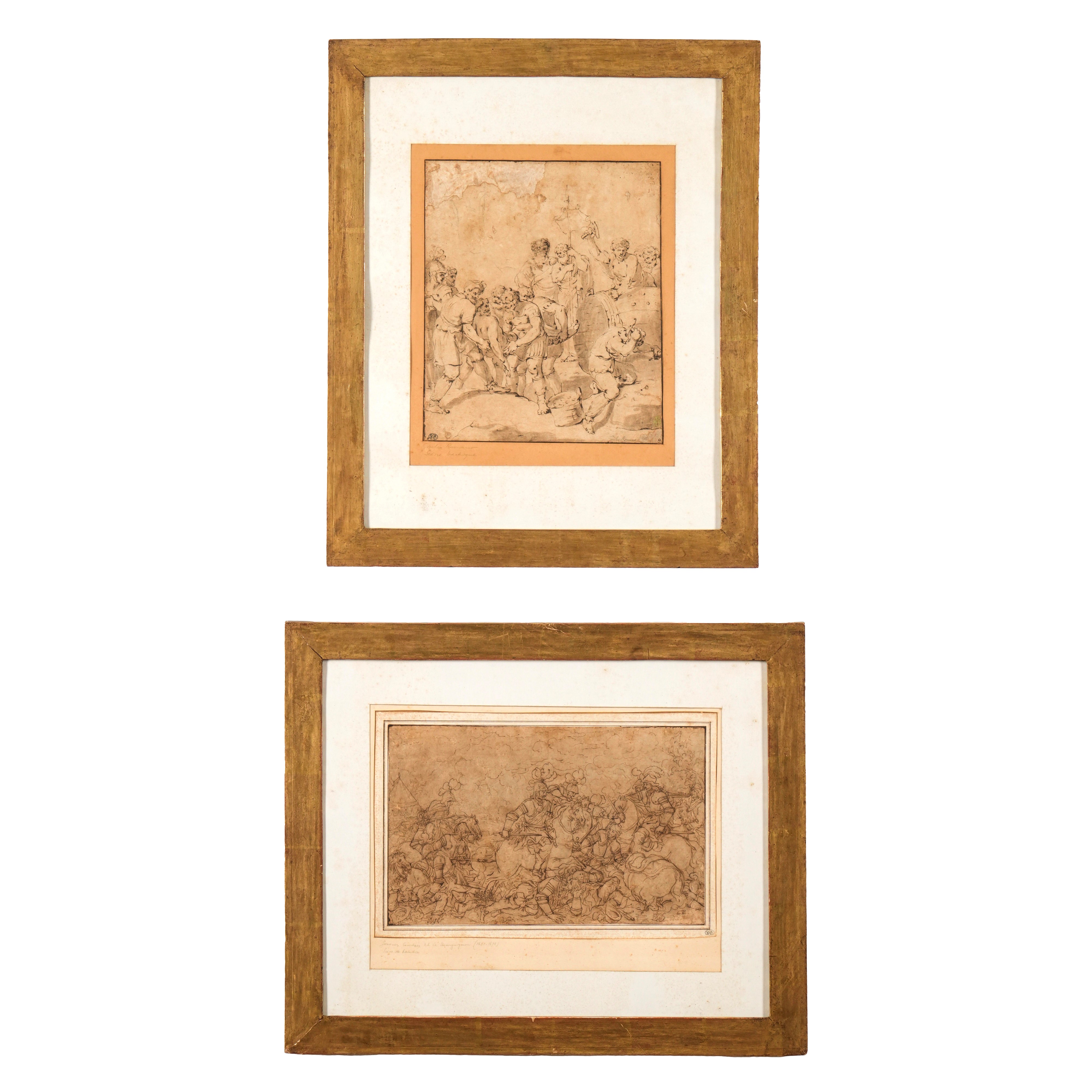 Scuola del XVIII secolo Diogene entra nella botte Scontro di cavalleria