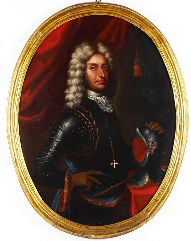 Scuola del XVIII secolo Ritratto di gentiluomo in armatura