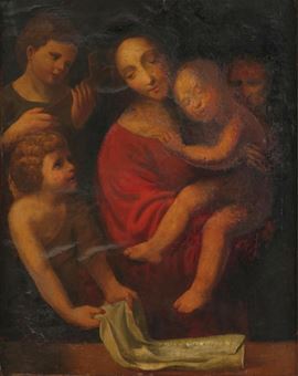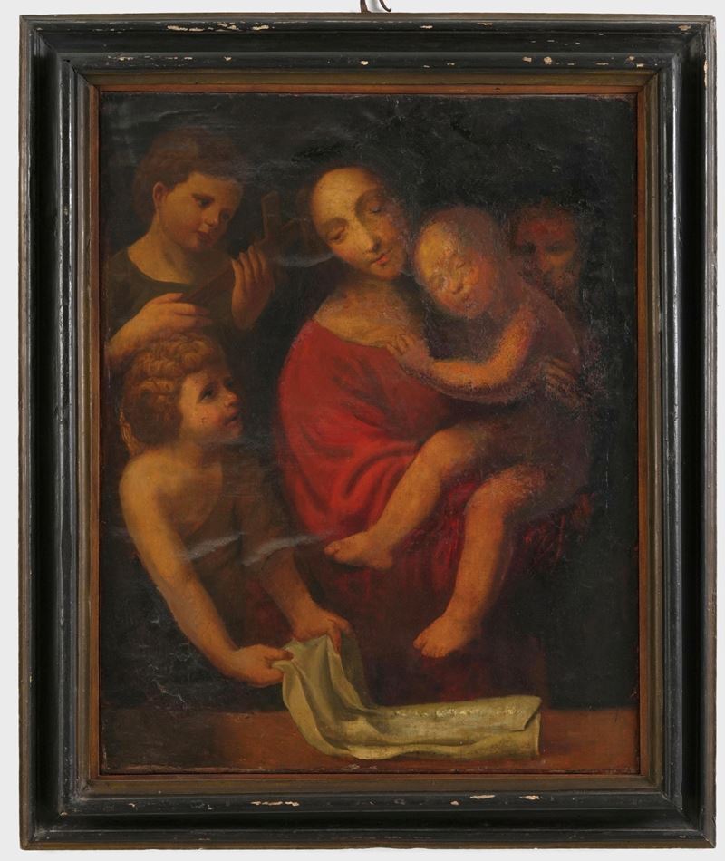 Scuola lombarda del XVI secolo Madonna con Bambino, San Giovannino e angeli