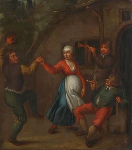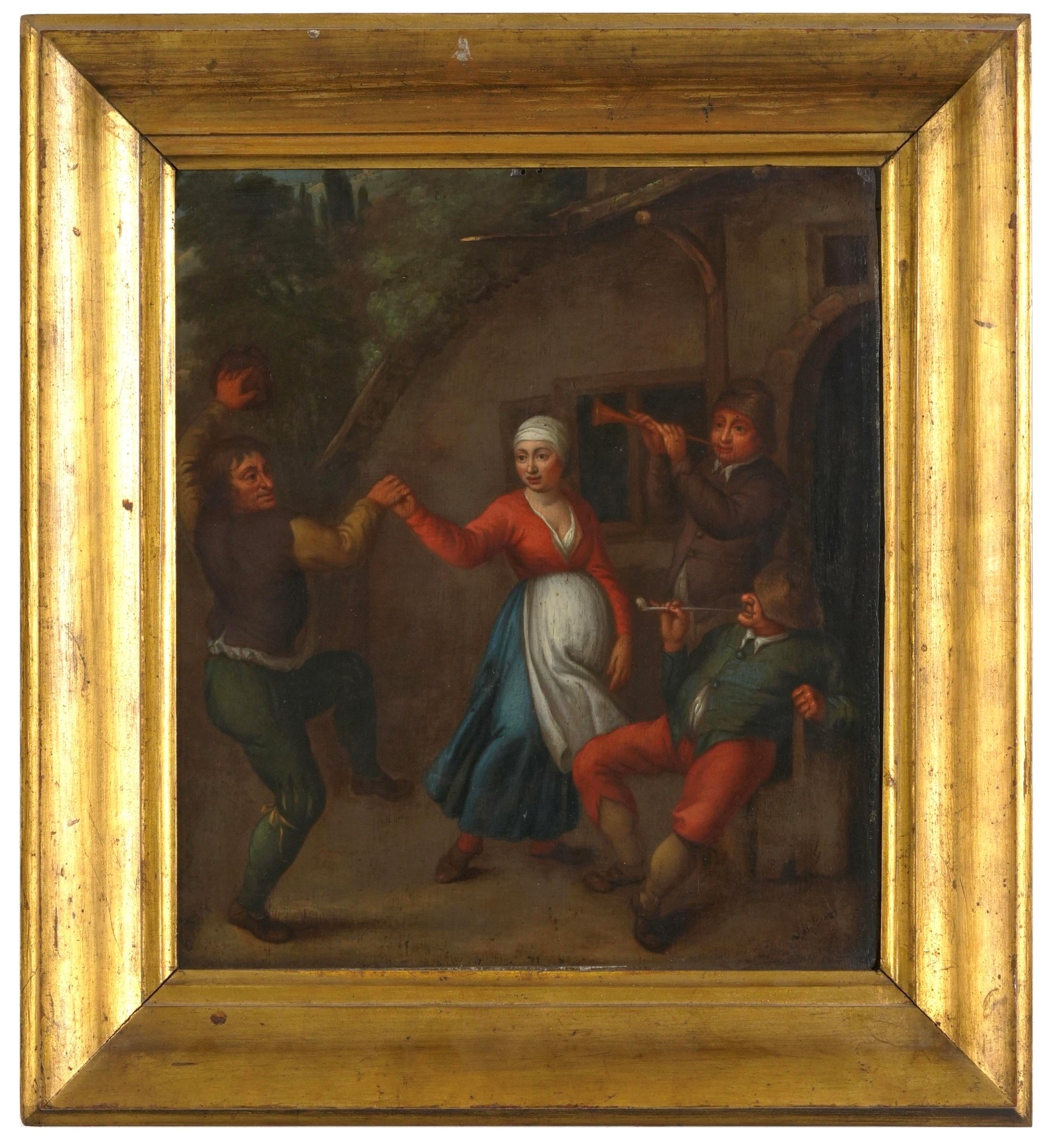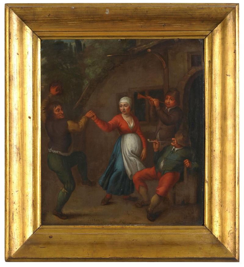 Scuola olandese del XVIII secolo Scena di genere con festa contadina