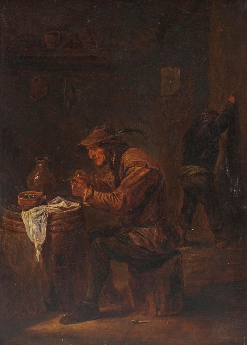 Scuola olandese del XVII/XVIII secolo Scena di genere con interno di osteria
