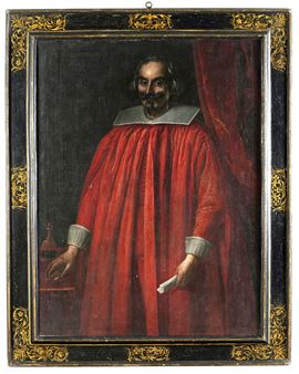 Scuola romana del XVII secolo Ritratto di senatore nello studio