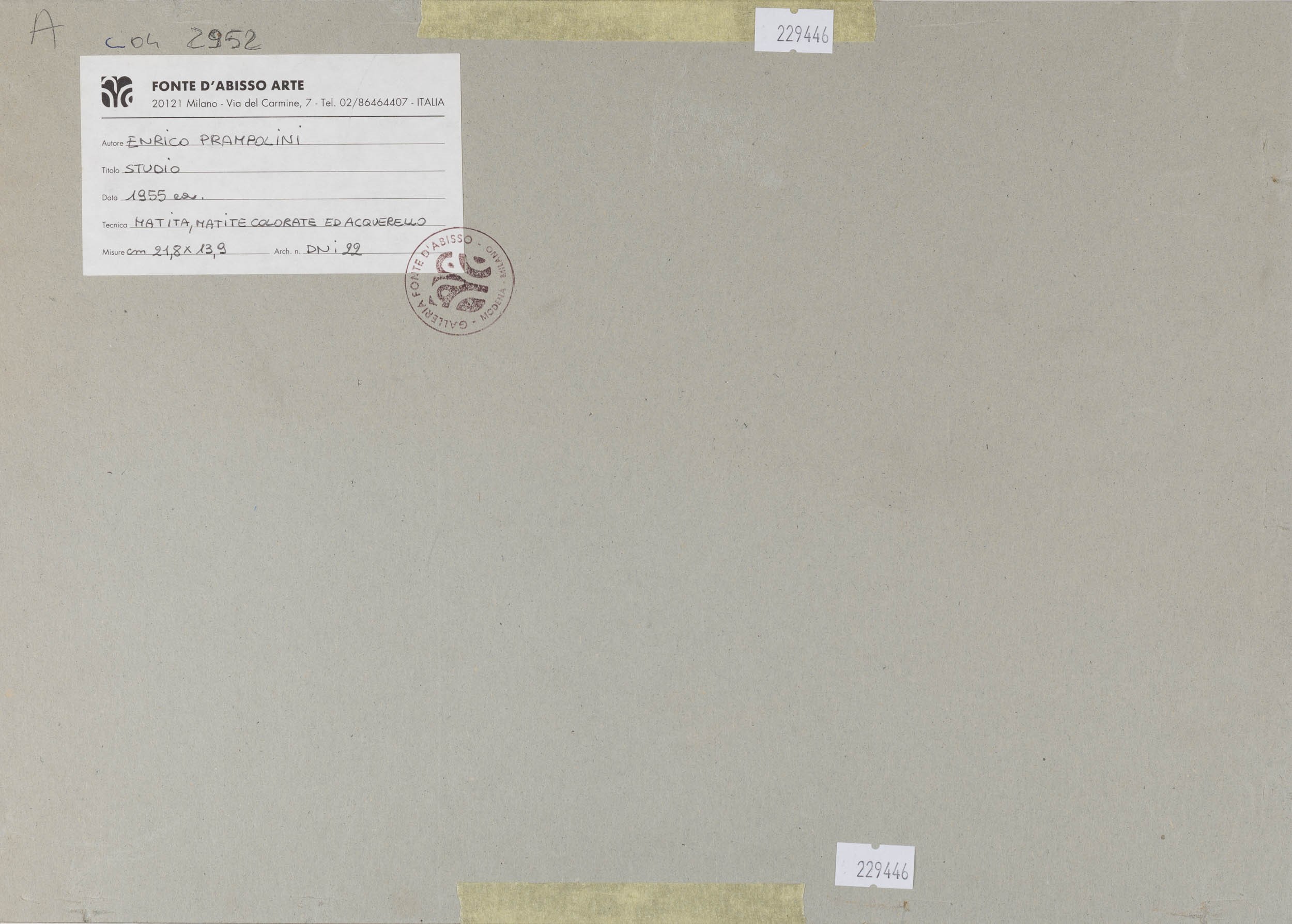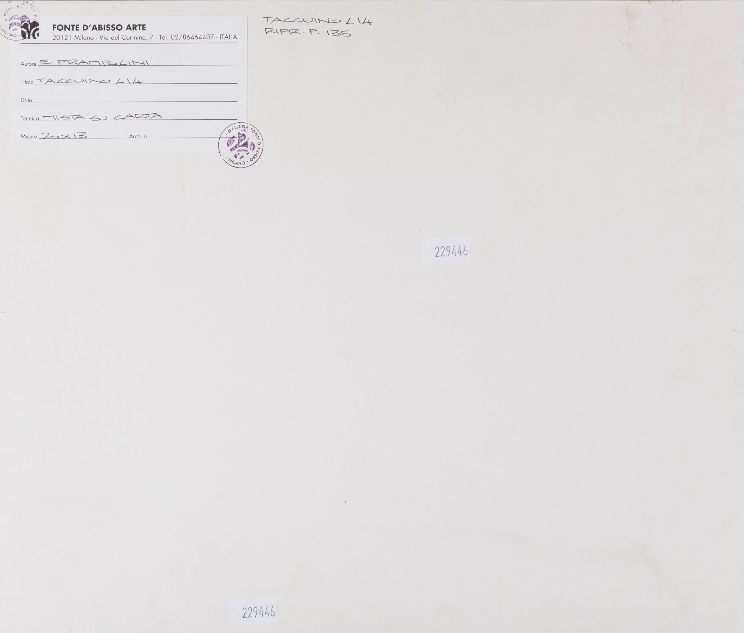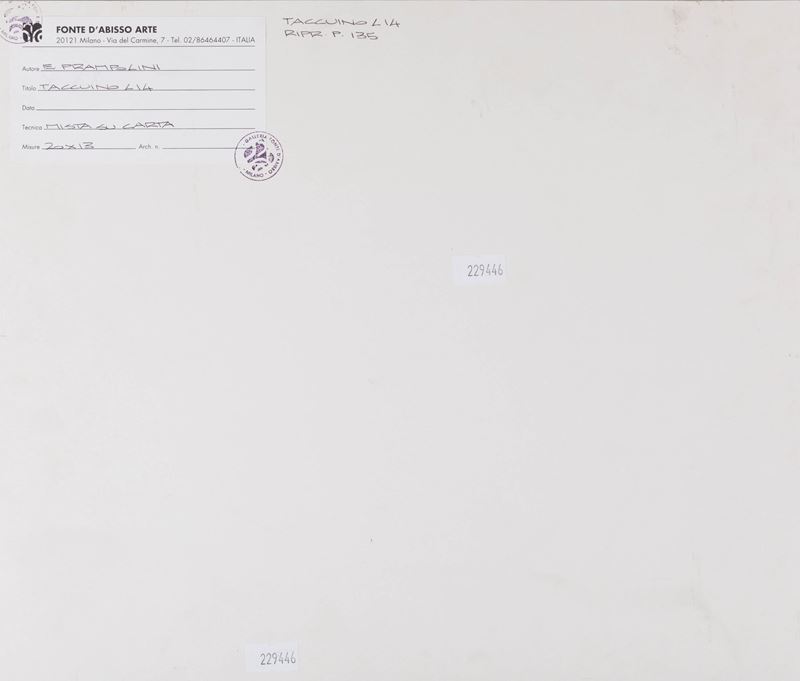 etichetta e timbro al retro della Galleria Fonte d’Abisso Arte, Milano