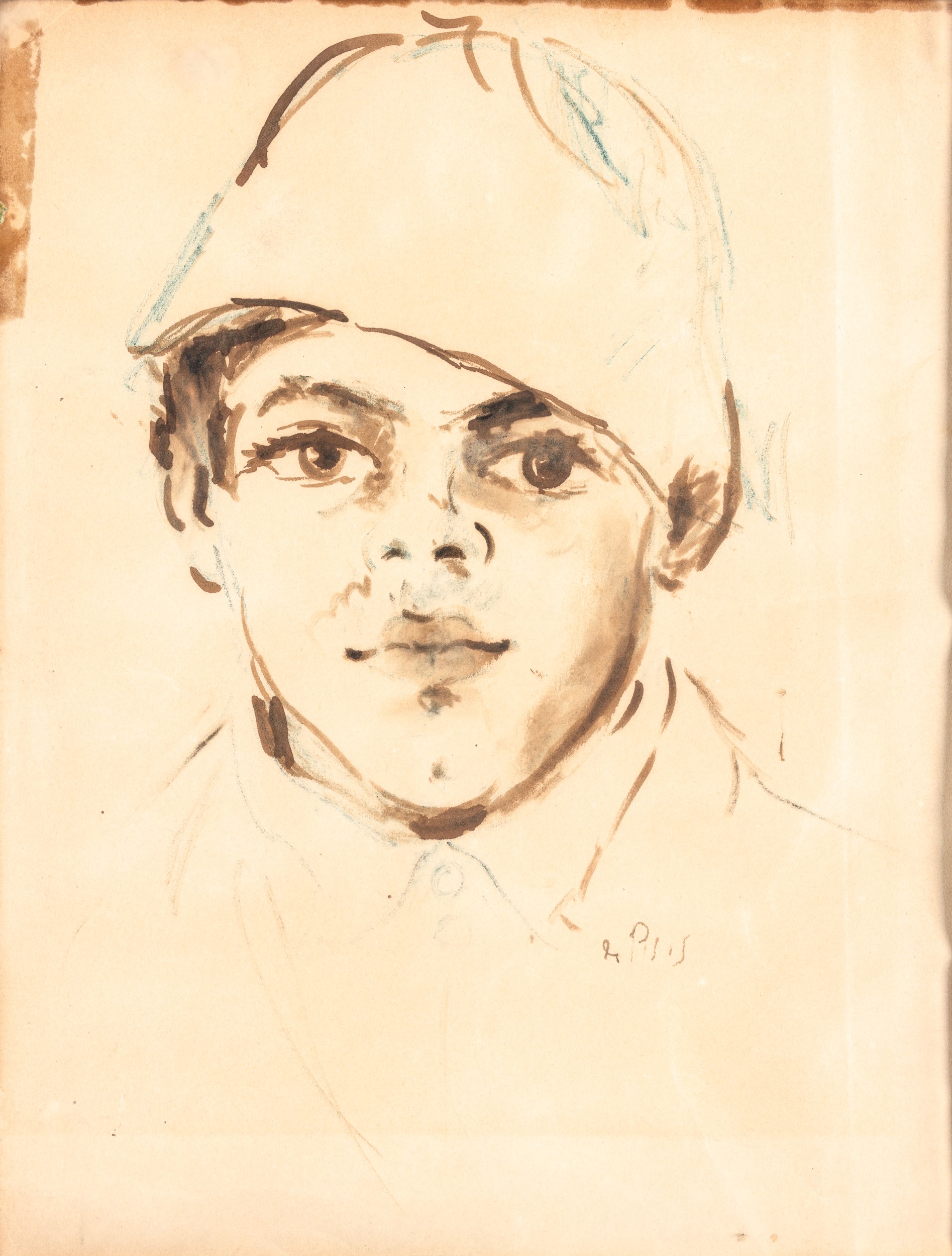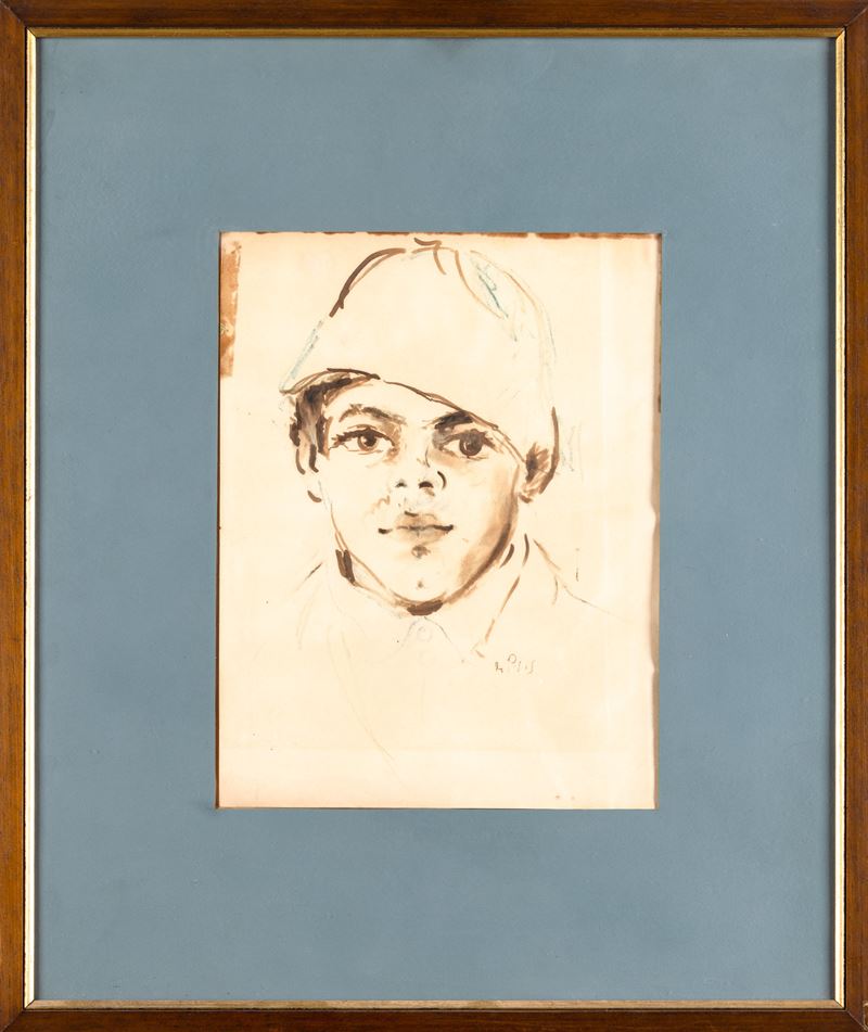 Ragazzo con berretto - Studio di figura seduta , anni '30