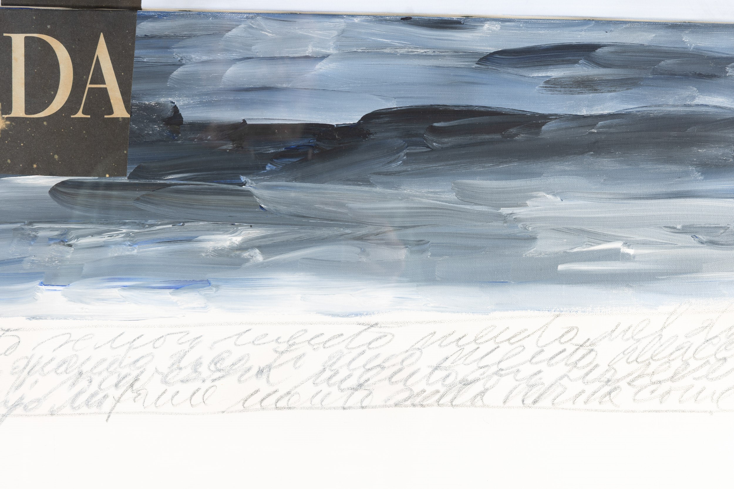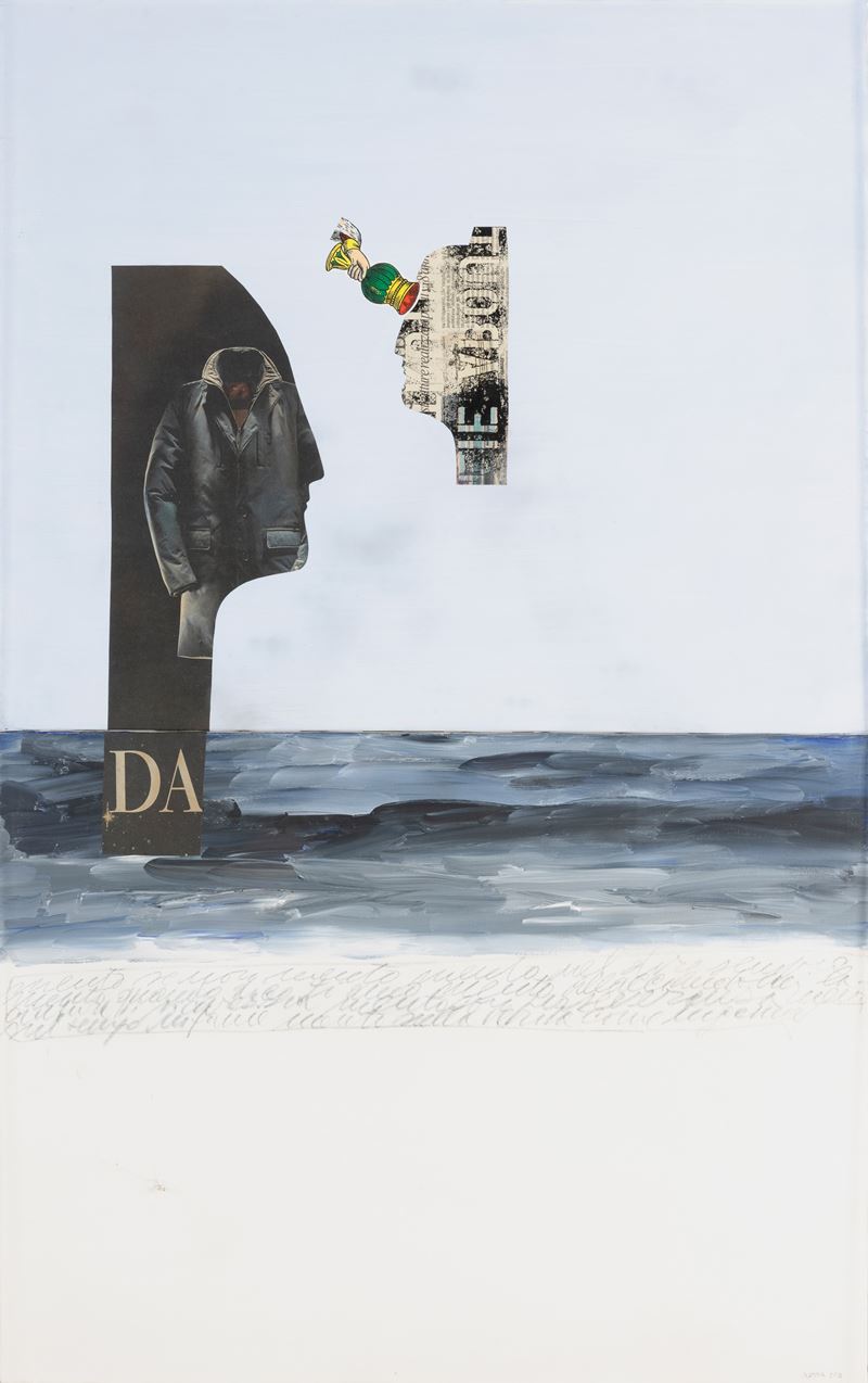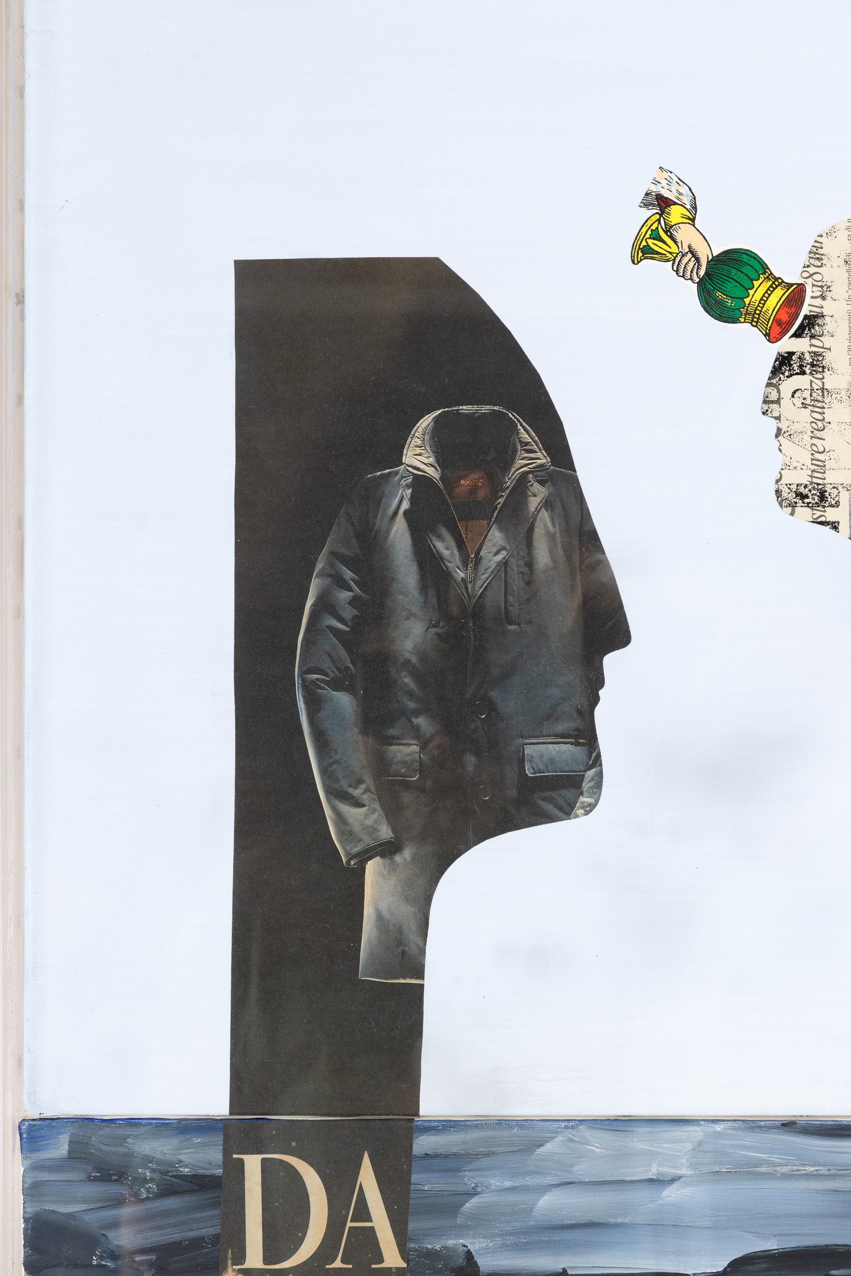 collage e tecnica mista su due tele, entro teca in plexiglass