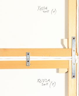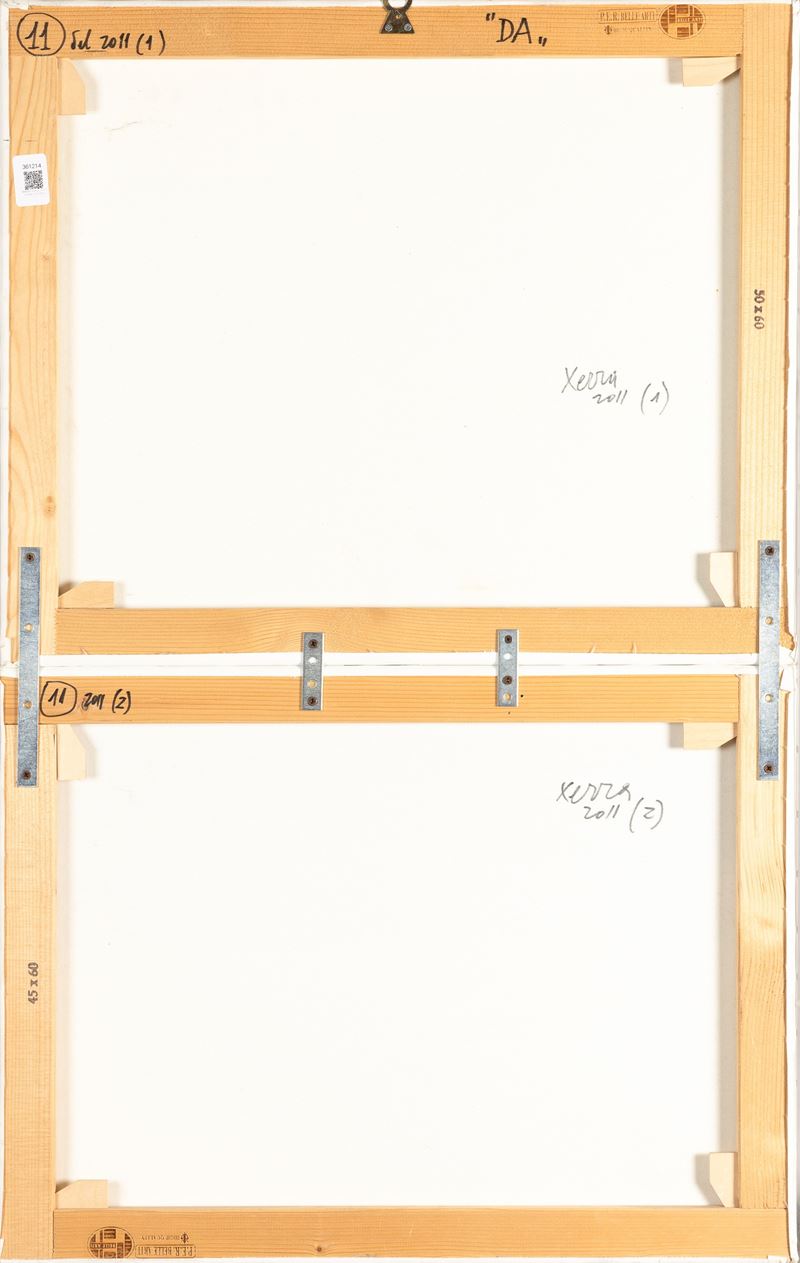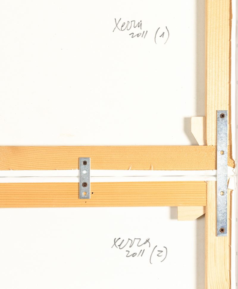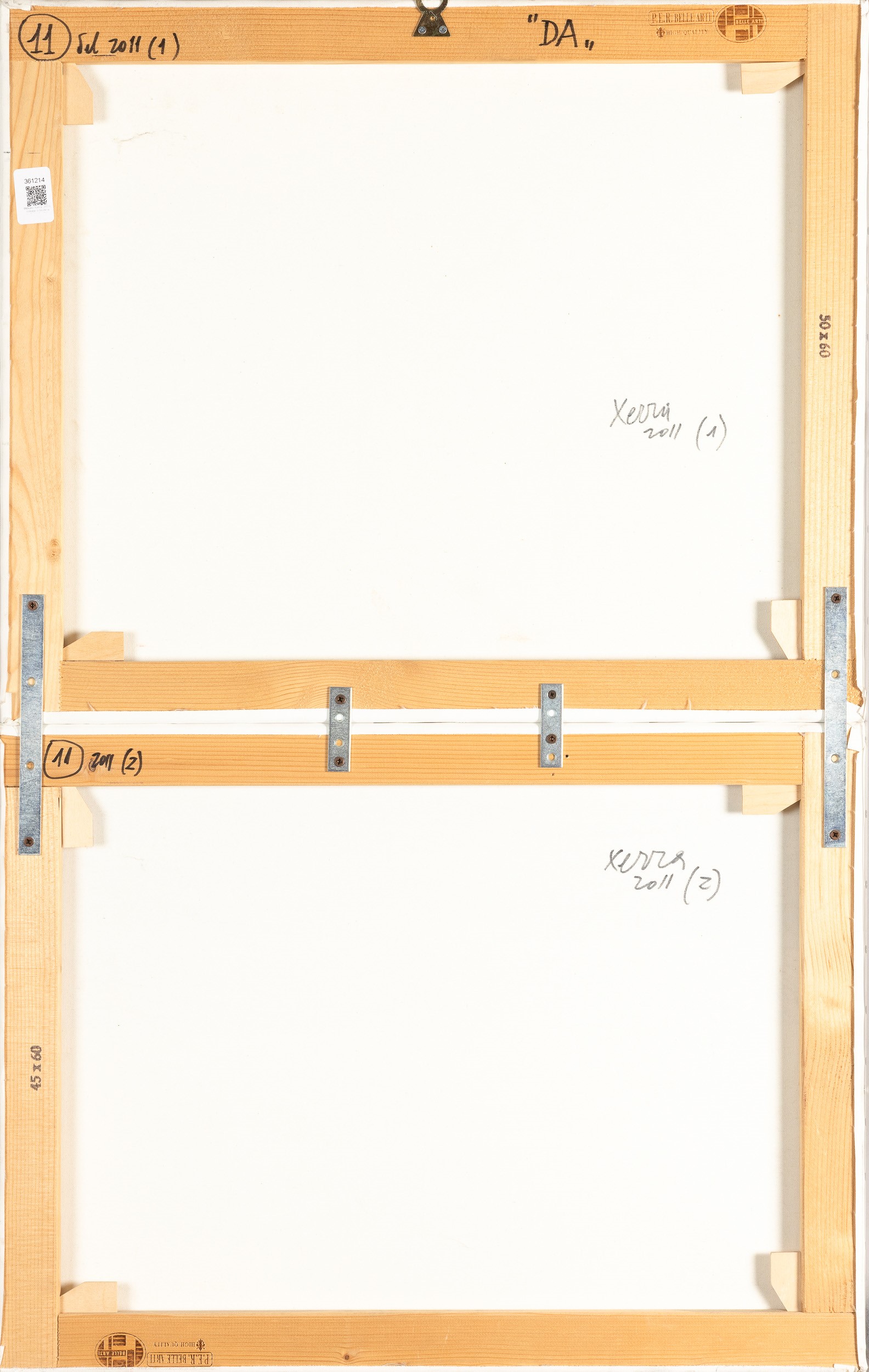 collage e tecnica mista su due tele, entro teca in plexiglass