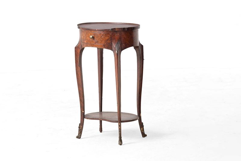 Lastronato, un cassettino nella fascia, gambe lievemente mosse, un pianotto basso di raccordo