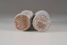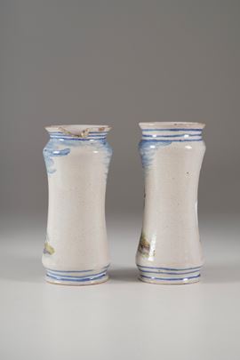 Coppia di albarelli in maiolica invetriata. XIX-XX secolo