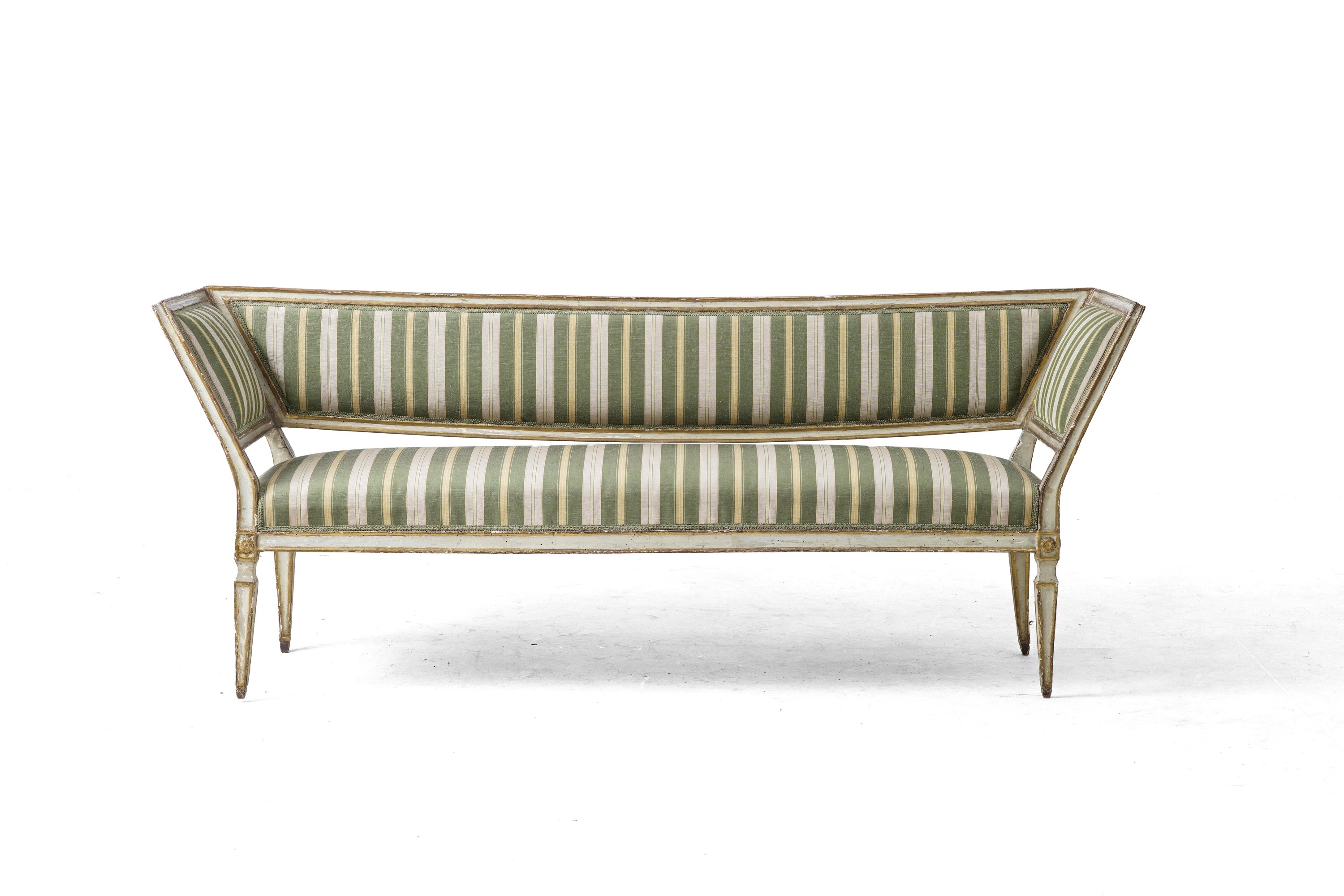 Divano Luigi XVI in legno laccato e dorato