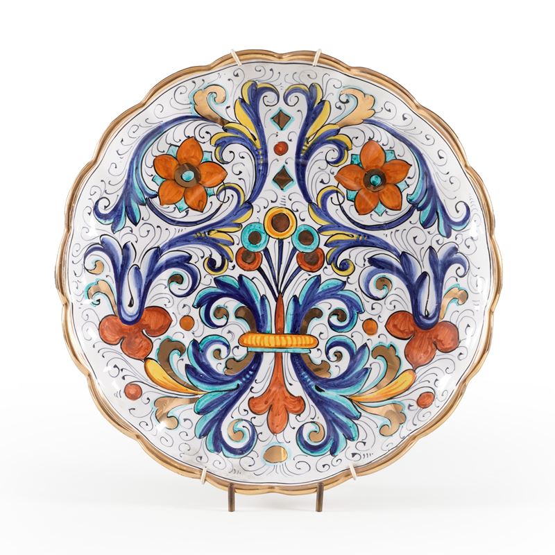 Grande piatto in maiolica invetriata. Santucci, Deruta