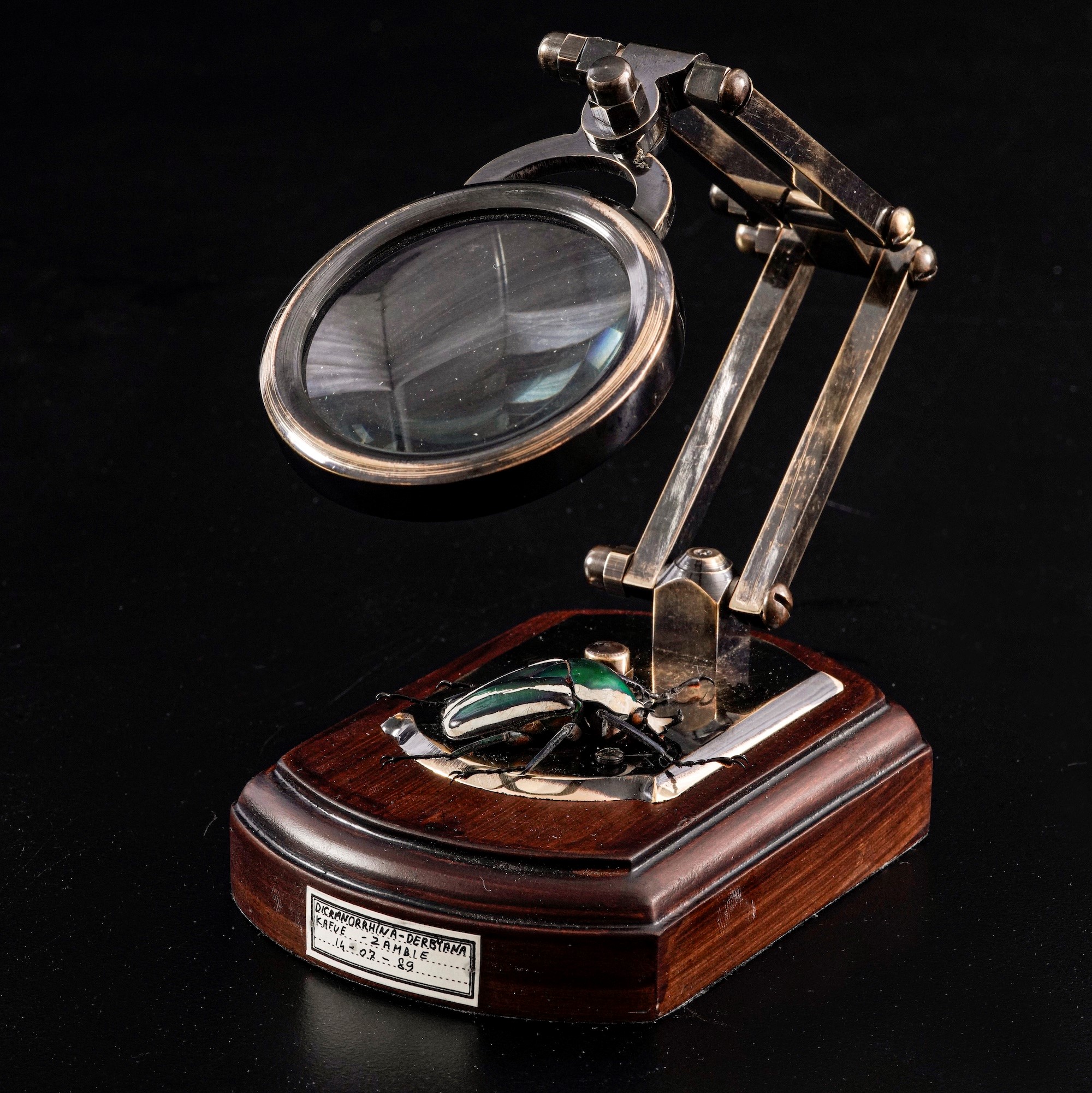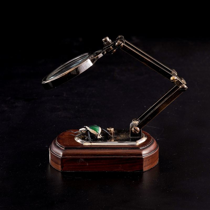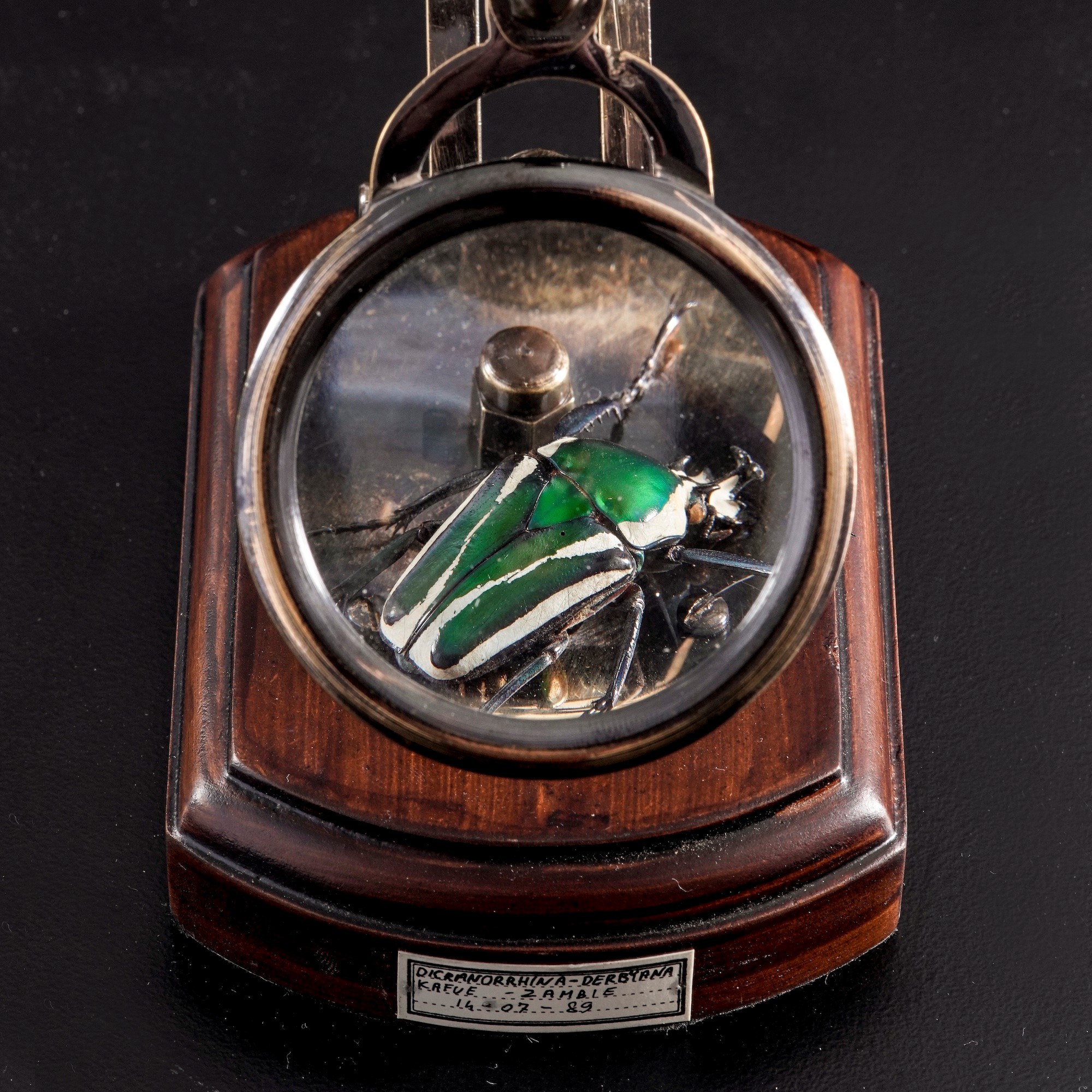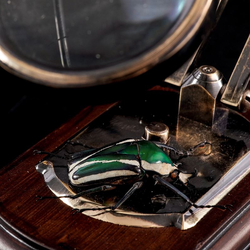 Lente d'ingrandimento con tassidermia di Dicronorhina Derbyana