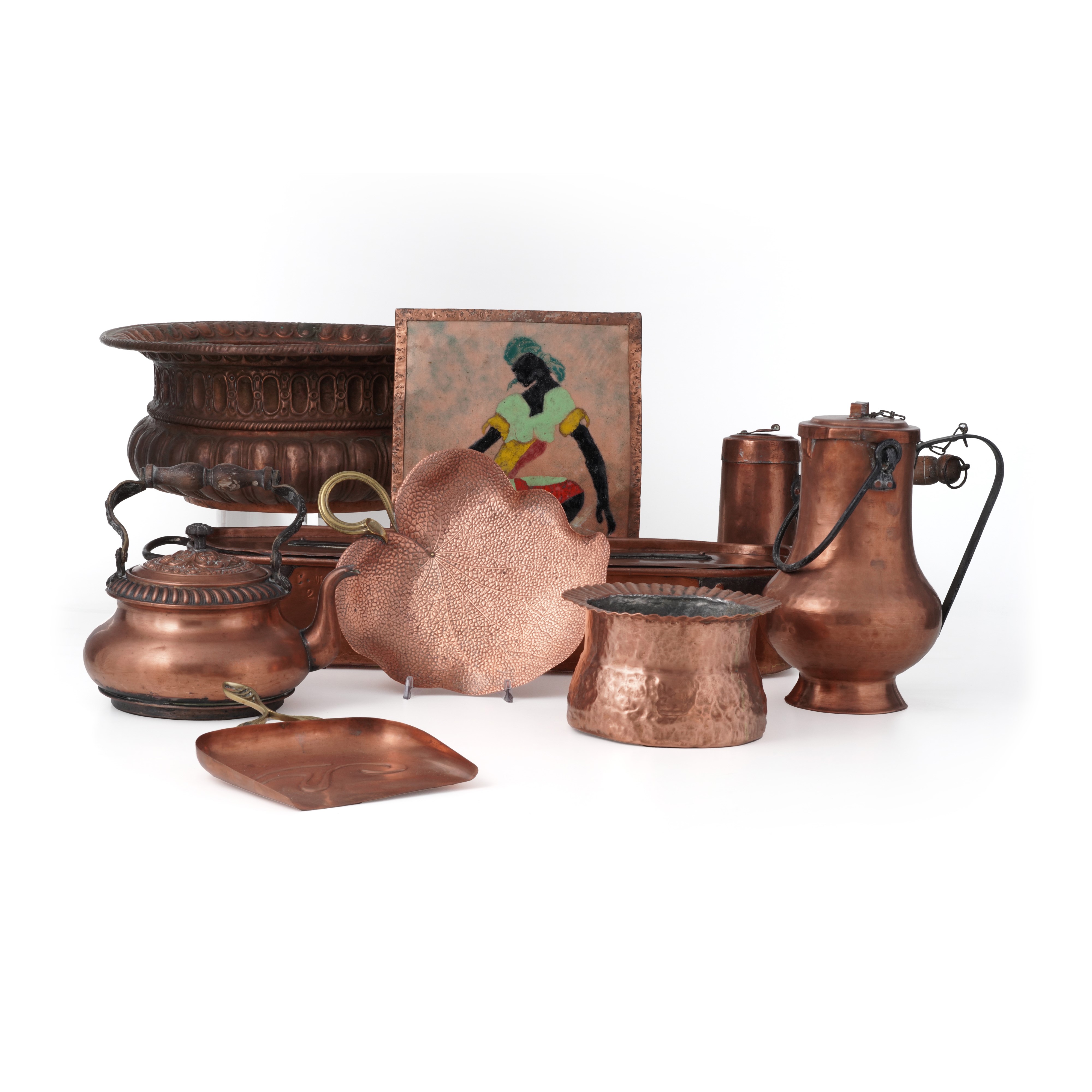 Tra questi un bacile baccellato, un vassoio a foglia, una teiera, una paletta, un vaso, due pentole, due brocche con coperchio