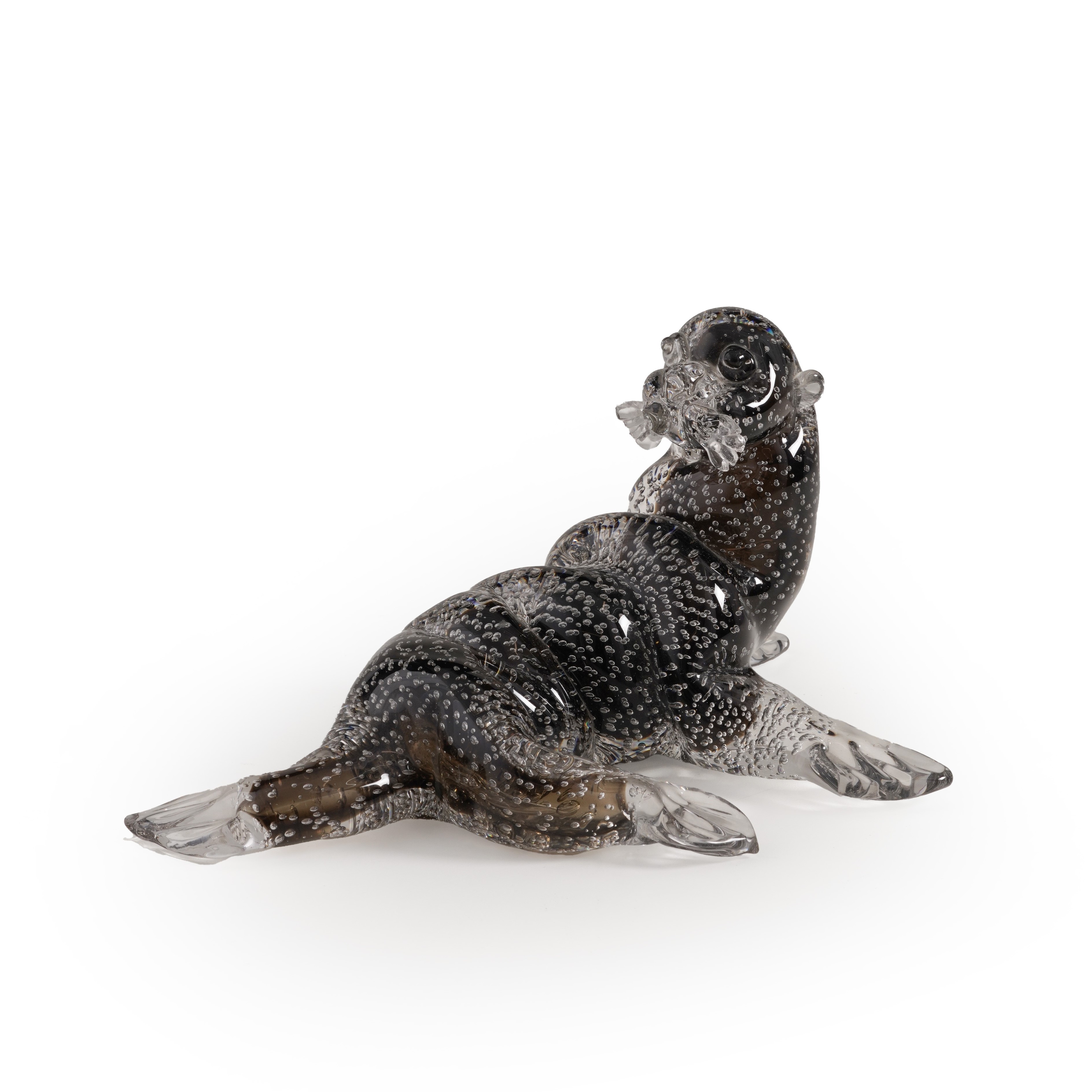 Soprammobile in forma di tricheco in vetro sommerso con inclusione di bollicine