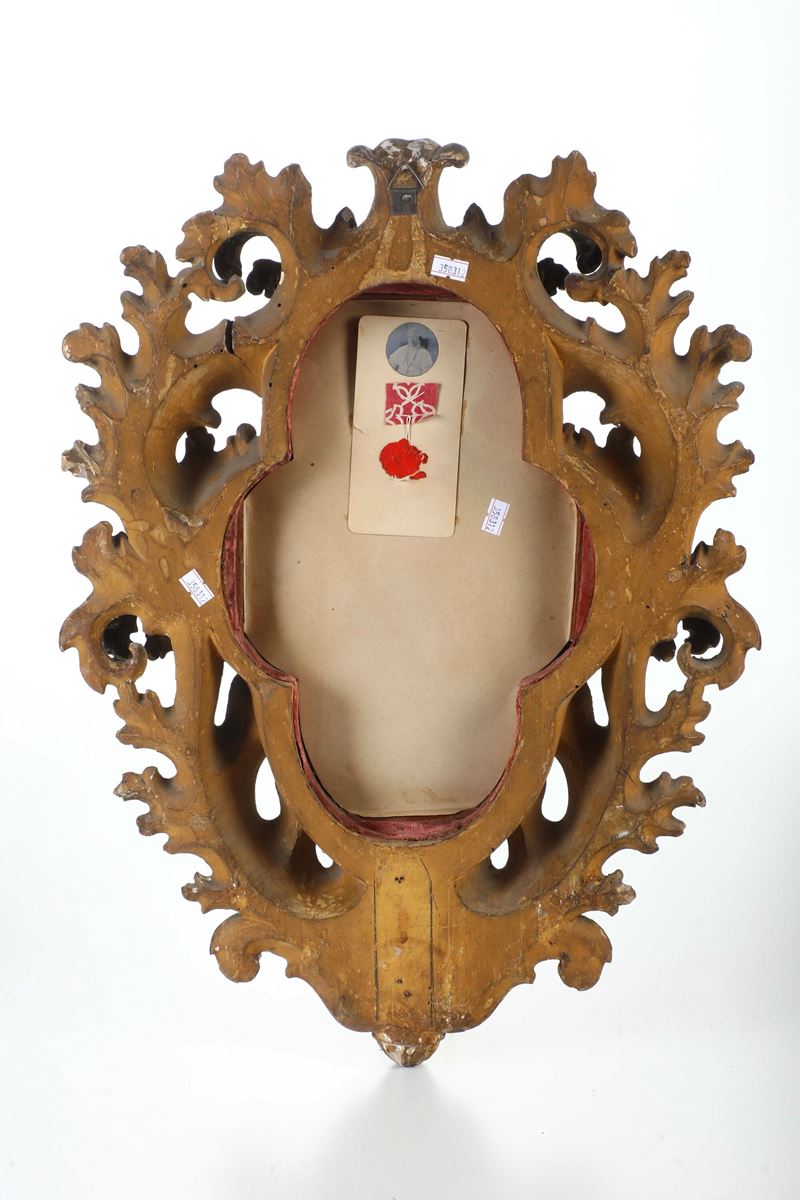 Riserva sagomata, cornice traforata a motivi fitomorfi