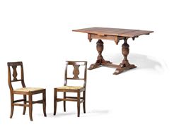 Si aggiunge nel lotto coppia di sedie direttorio con schienali a cartella e sedute impagliate