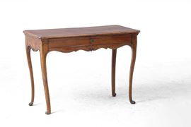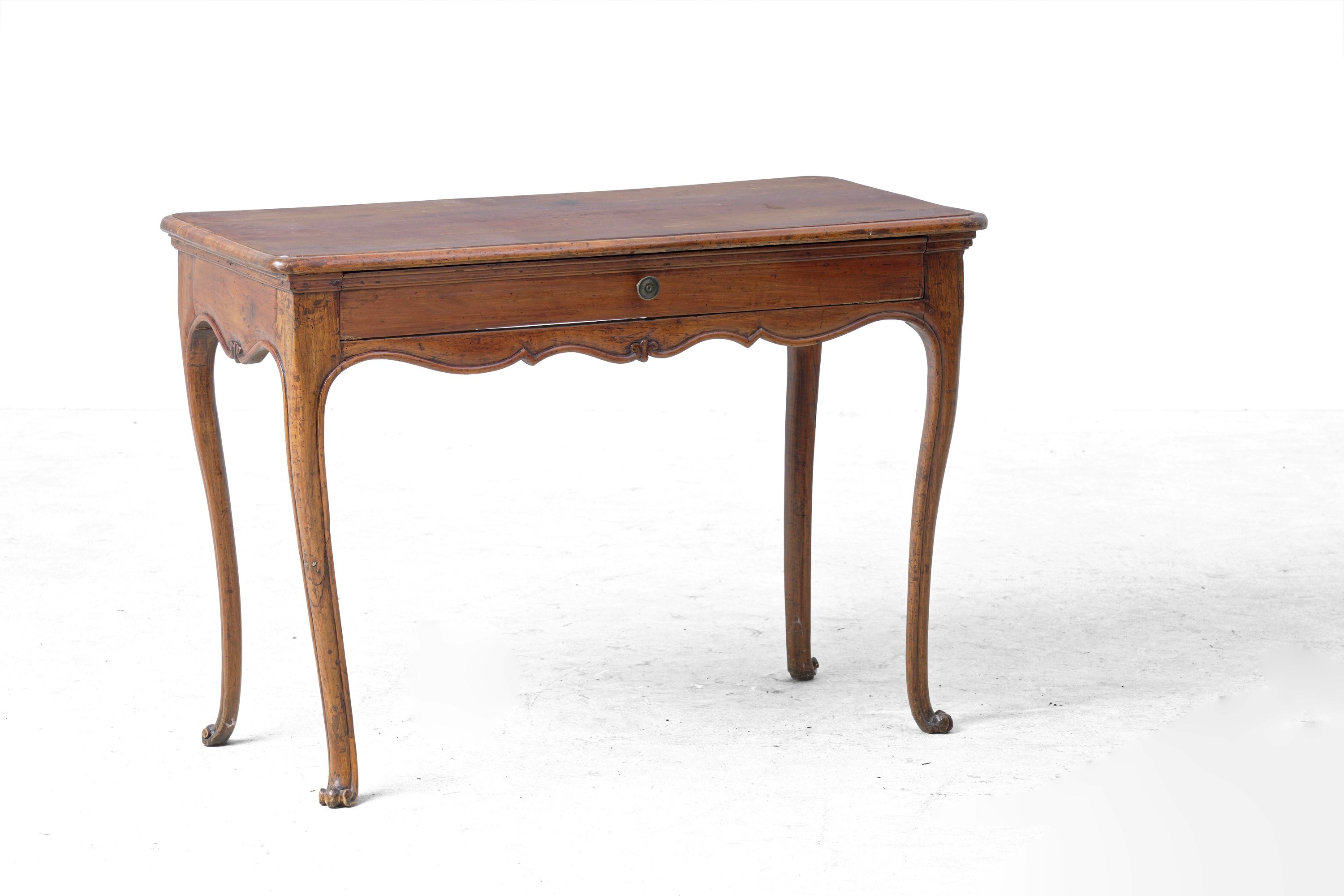 Un cassetto nella fascia, grambiale sagomato, gambe mosse (restauri)