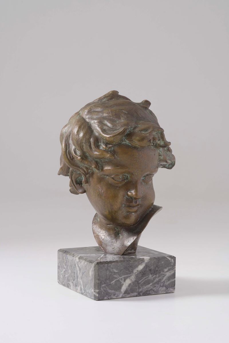 Testa di fanciullo in bronzo. Fonditore del XX secolo