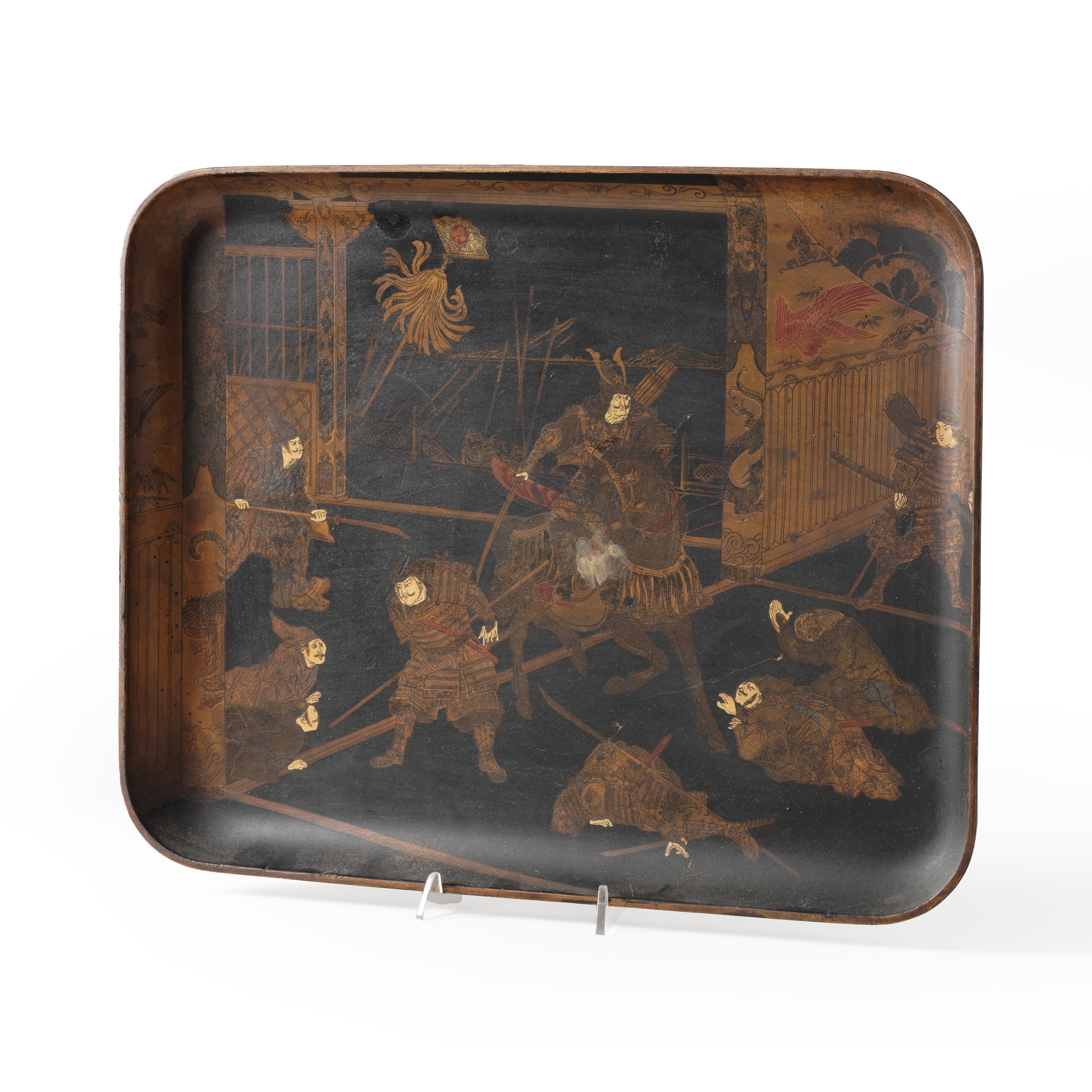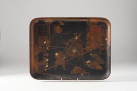 Vassoietto laccato con scena di battaglia. Giappone XX secolo
