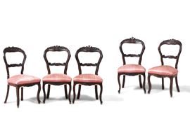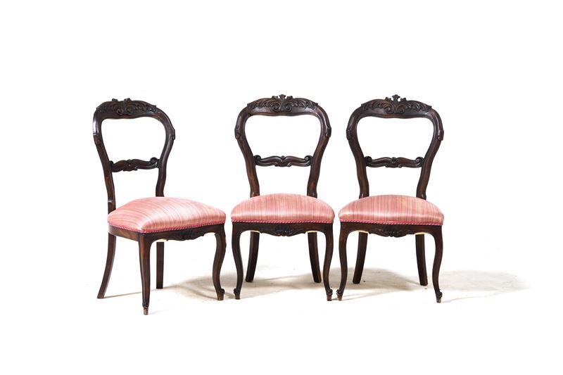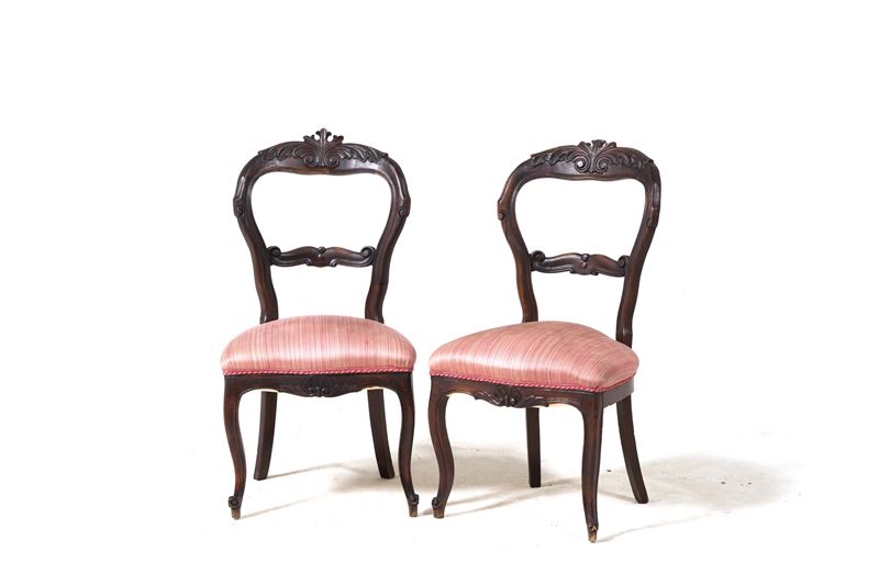 Lotto di cinque sedie in legno intagliato. XIX-XX secolo