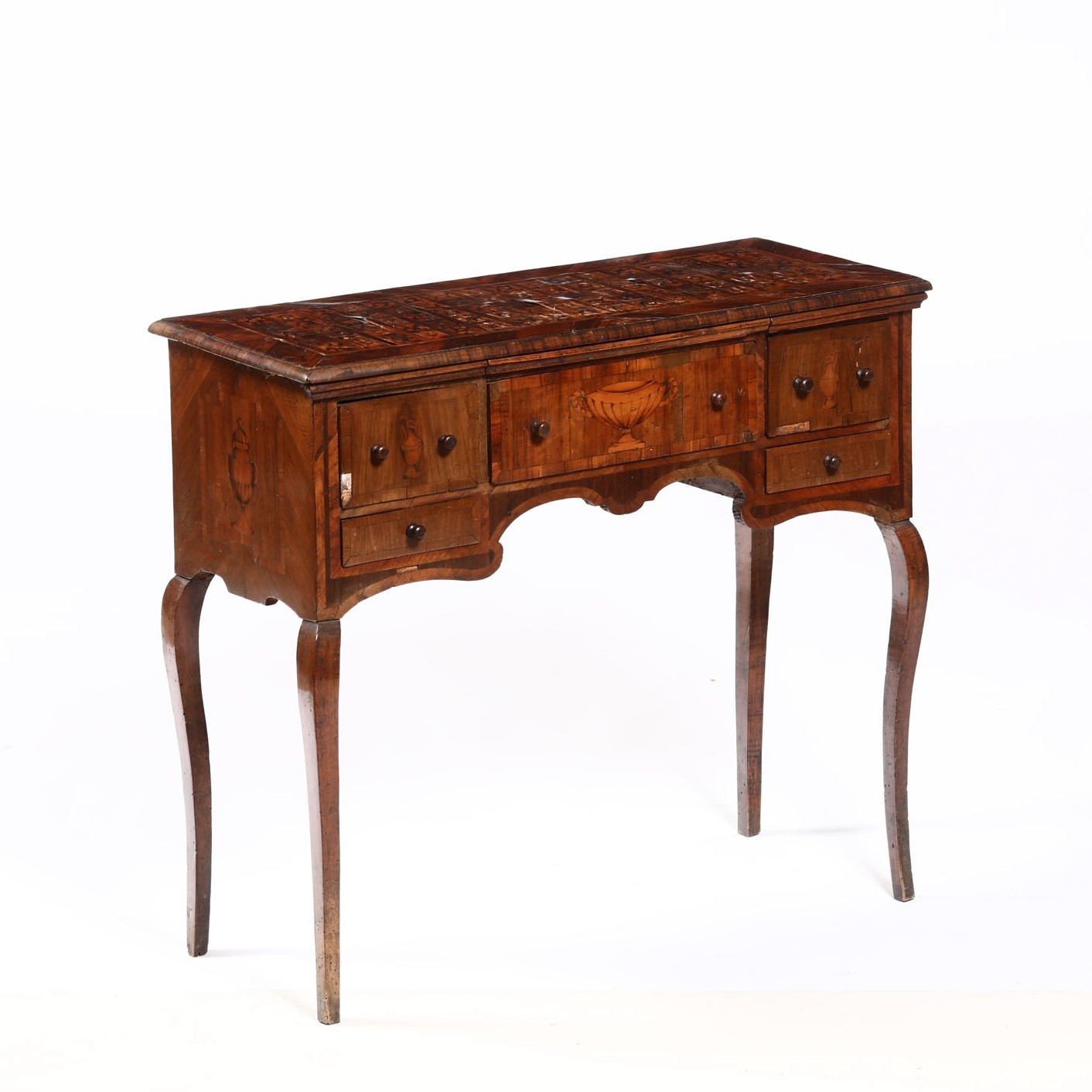 Piccola scrivania lastronata ed intarsiata, XVIII secolo