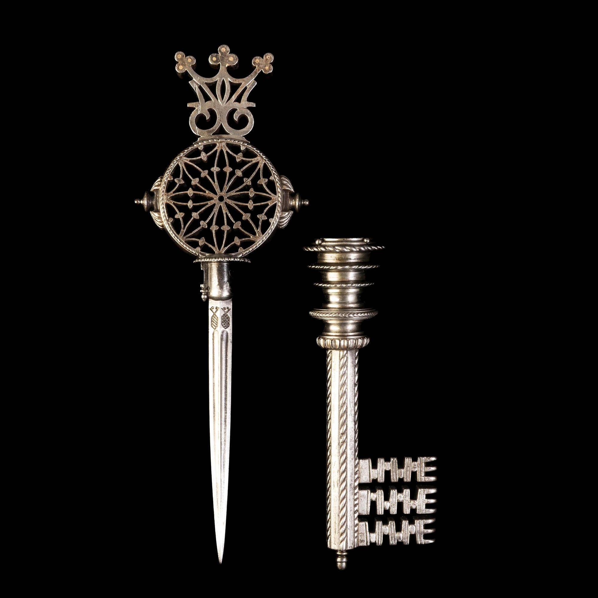 Eccezionale chiave rinascimentale in ferro forgiato con stiletto