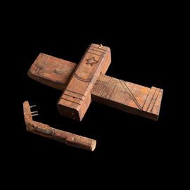 Insieme di cinque serrature in legno. XVIII-XX secolo