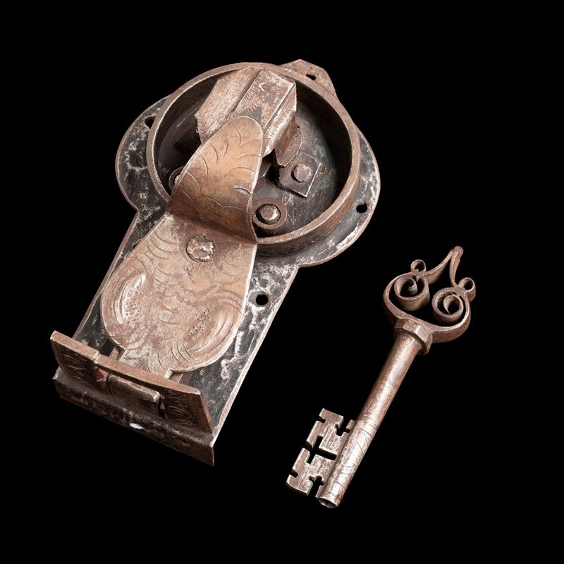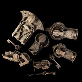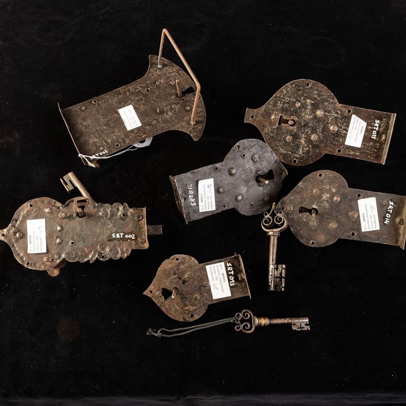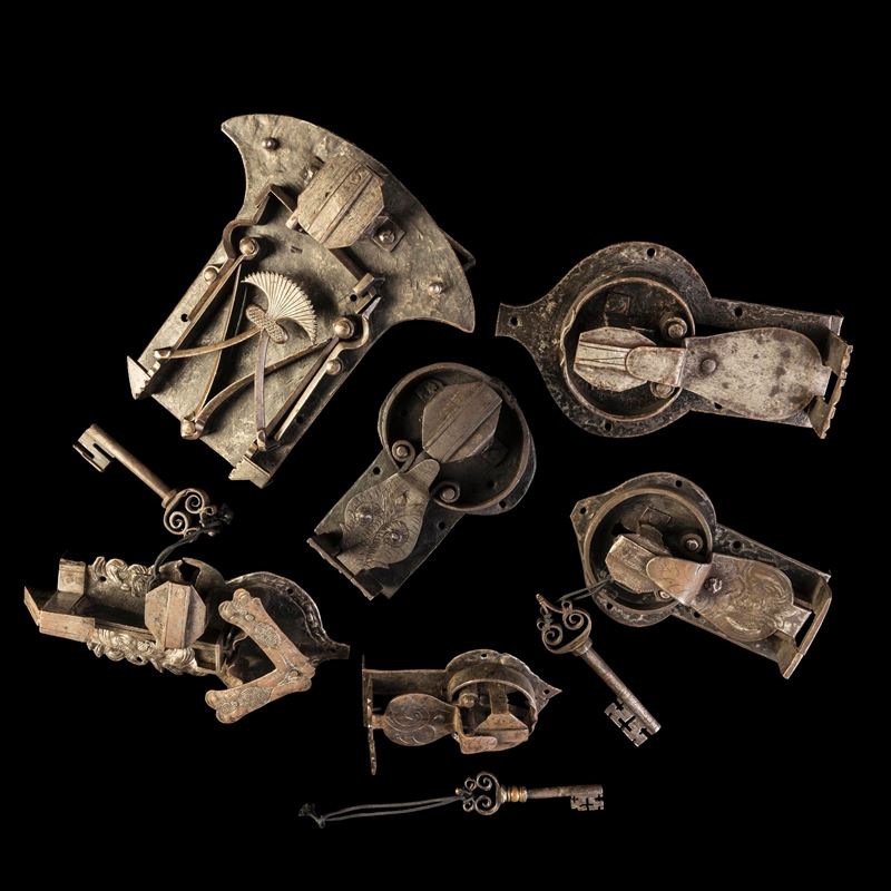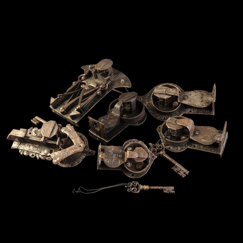 Insieme di sei serrature in ferro battuto. Germania meridionale, XVI-XVII secolo